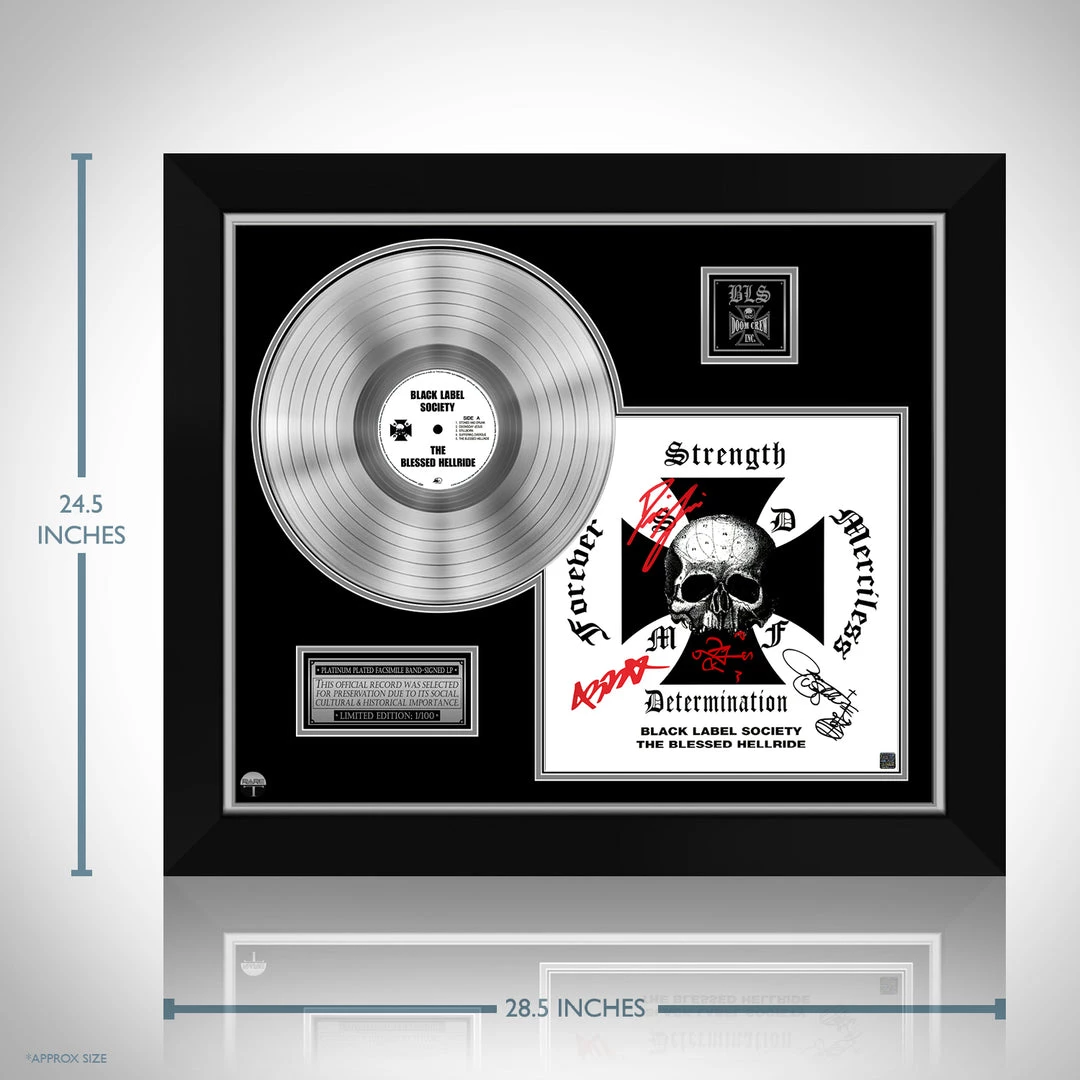 Pay homage to Black Label Society , with this gallery-framed, authentic Spitfire Records fully licensed facsimile of the official Hand-Signed Platinum Plated LP Record and LP Cover The Blessed Hellride Originally signed by Zakk Wylde, John DeServio, Jeff Fabb & Dario Lorina, of which is strictly limited to 100 units Worldwide and has been approved and numbered accordingly.