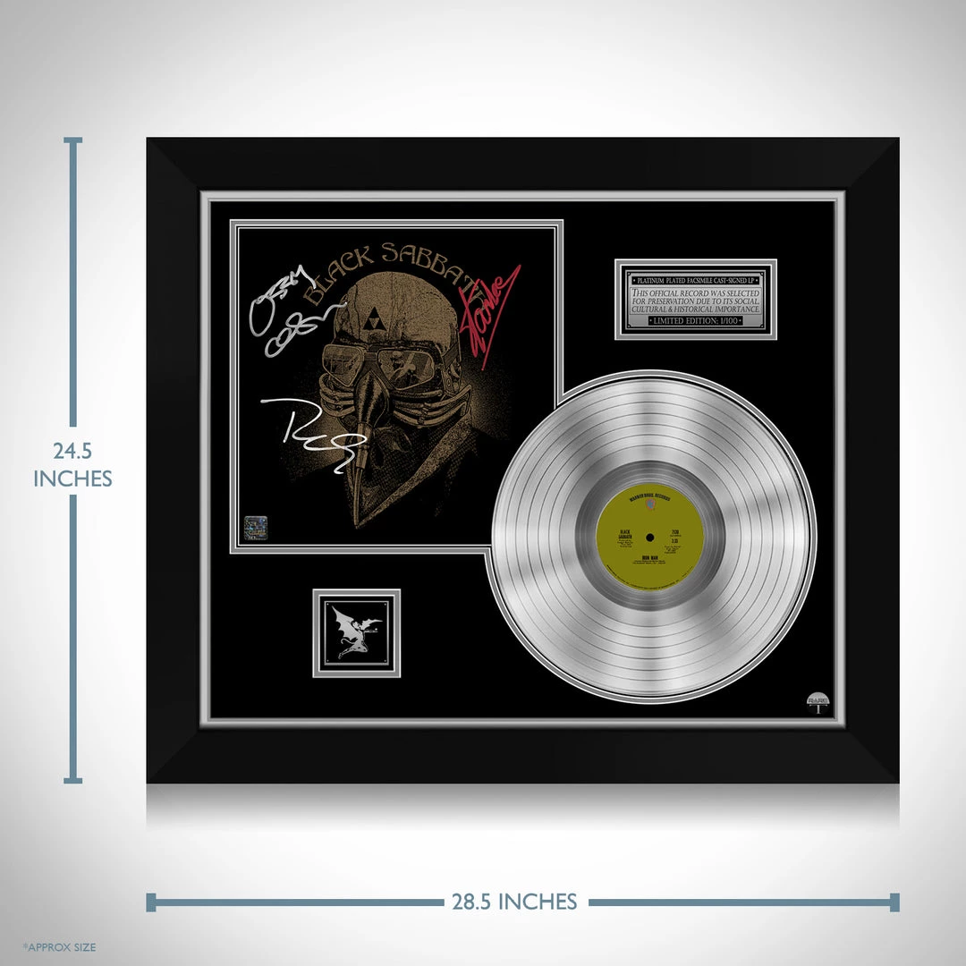 Pay homage to one of the most iconic band of all time Black Sabbath , with this gallery-framed, authentic Warner Bros records fully licensed facsimile of the official Hand-Signed Platinum Plated LP Record and LP Cover Iron Man Originally signed by Stan Lee, Robert Downey Jr. & Ozzy Osbourne , of which is strictly limited to 100 units Worldwide and has been approved and numbered accordingly.