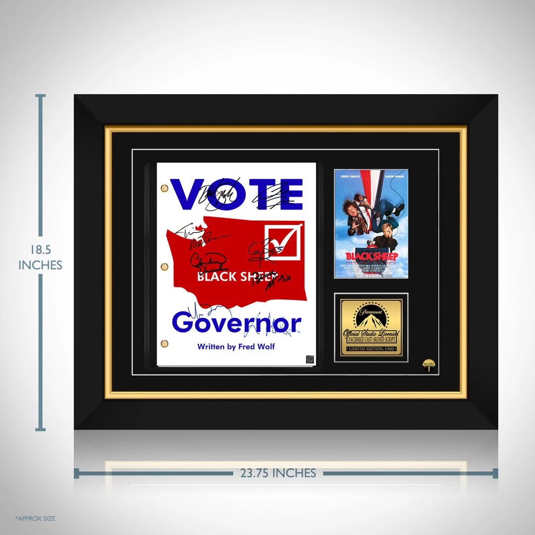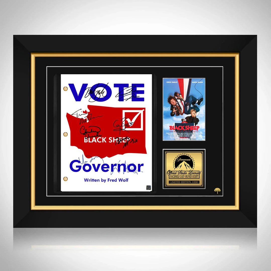 Pay homage to Black Sheep, with this Paramount Pictures fully licensed facsimile of the official signed movie Transcript , originally signed by actors Lorne Michaels, Chris Farley, David Spade, Tim Matheson, Christine Ebersole, Gary Busey, Bruce McGill & Chris Owen , of which is strictly limited to 100 units Worldwide and has been approved and numbered accordingly.