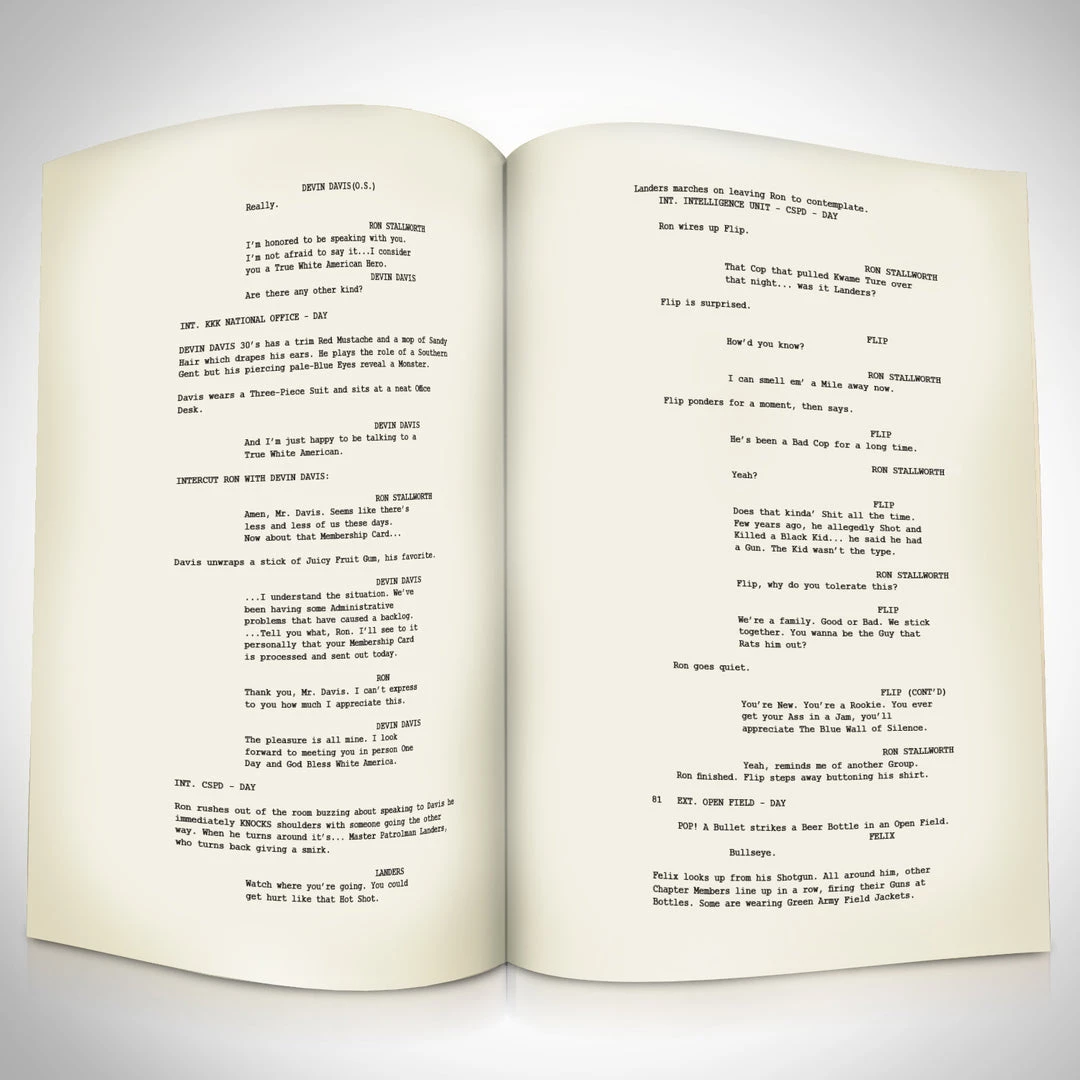 — Collectible Facsimile of Original Hand-Signed blacKkKlansman movie Script Custom Frame.