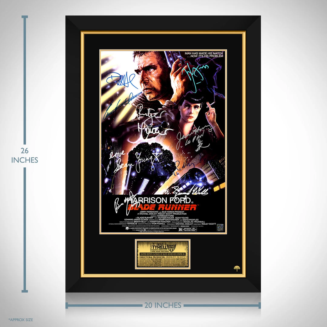 Pay homage to one of the most iconic films of all time, Blade Runner, with this gallery-framed, officially licensed, limited edition facsimile of hand-signed movie mini poster, originally signed by Ridley Scott, Harrison Ford, Rutger Hauer, Sean Young, Edward James Olmos, M.Emmet Walsh, Daryl Hannah, Brion James & James Hong, of which is strictly limited to 100 units Worldwide, and has been approved and numbered accordingly.