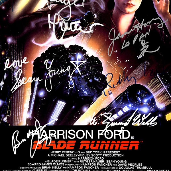 — Originally signed by Ridley Scott, Harrison Ford, Rutger Hauer, Sean Young, Edward James Olmos, M.Emmet Walsh, Daryl Hannah, Brion James & James Hong