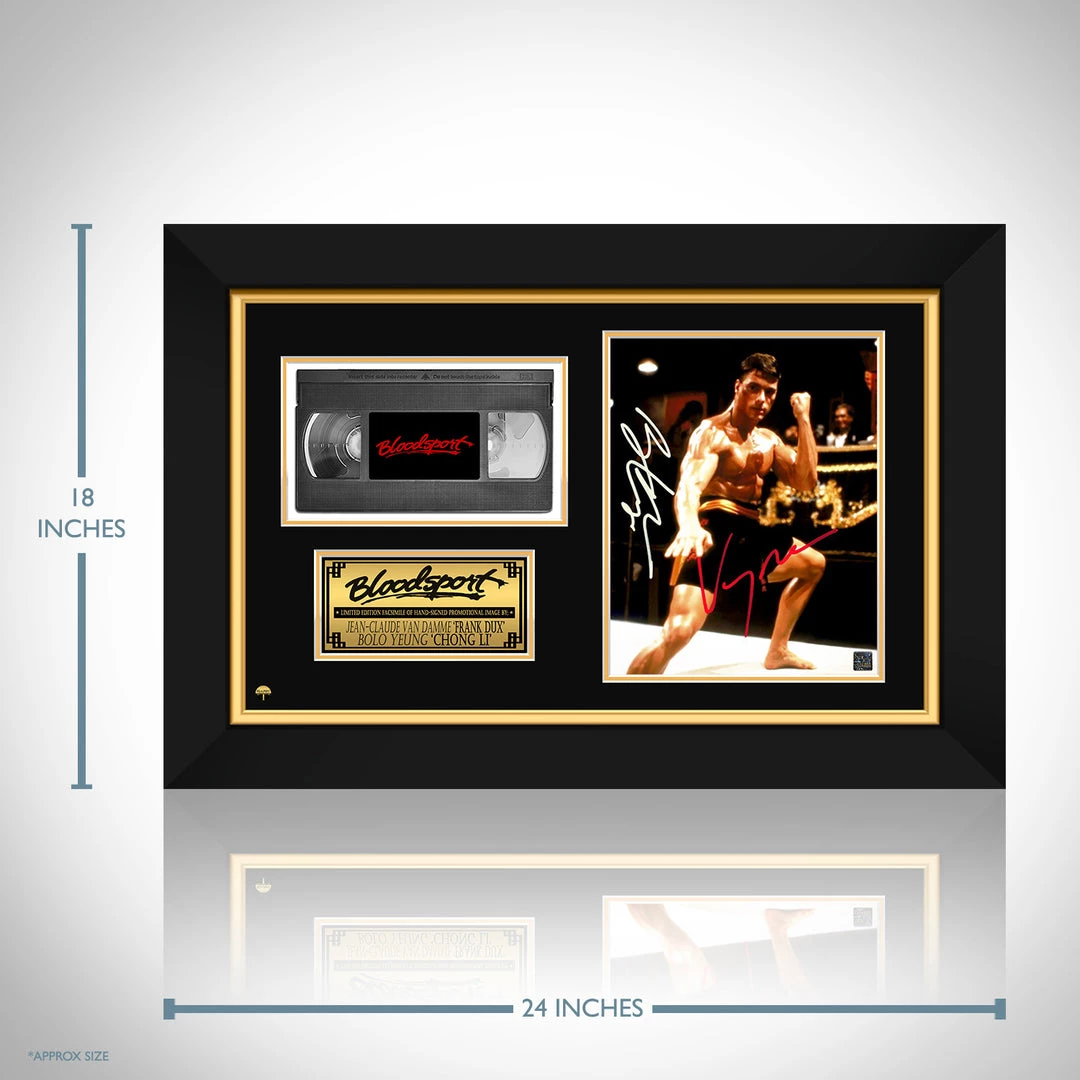 Pay homage to Bloodsport, with this gallery-framed, officially licensed, limited edition facsimile of hand-signed movie photo & VHS , originally signed by Jean-Claude Van Damme & Bolo Yeung, of which is strictly limited to 100 units Worldwide, and has been approved and numbered accordingly.