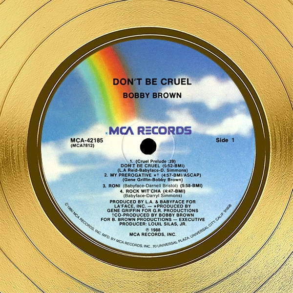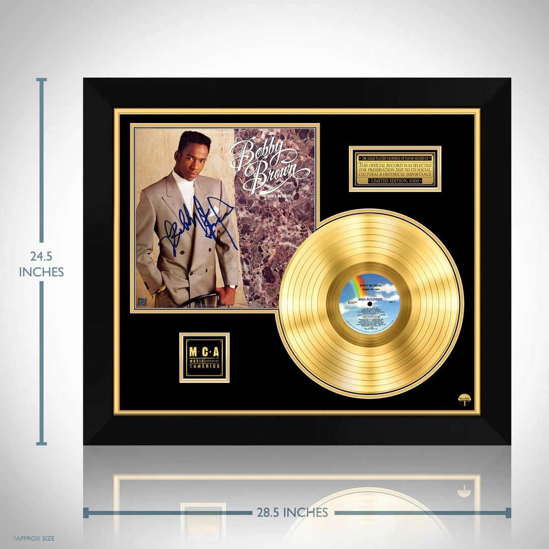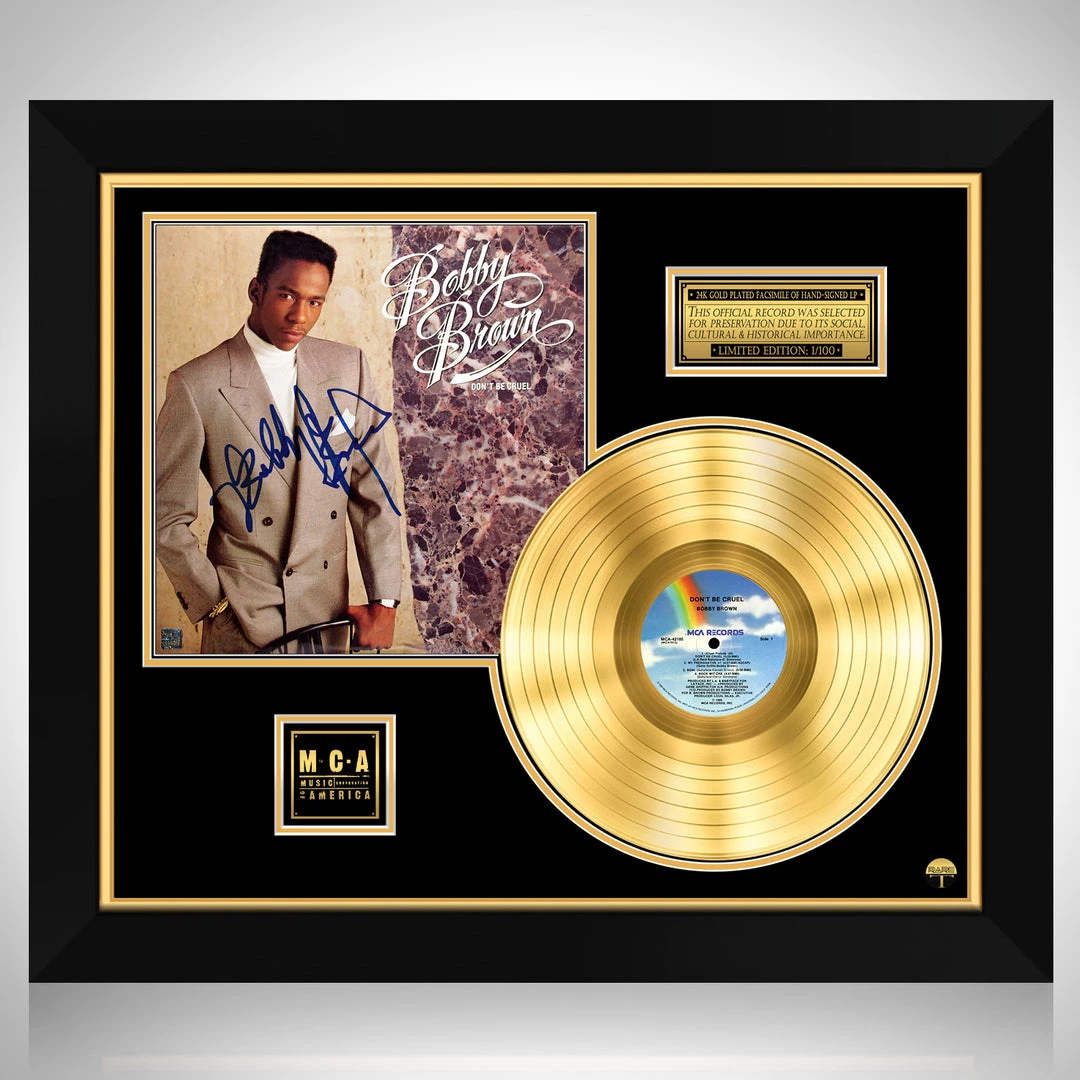 Pay homage to one of the most iconic American singer, songwriter, rapper, dancer of all time Bobby Brown , with this gallery-framed, authentic MCA Records fully licensed facsimile of the official Hand-Signed 24K Gold LP Record and LP Cover Don’t be Cruel Originally signed by Bobby Brown , of which is strictly limited to 100 units Worldwide and has been approved and numbered accordingly.
