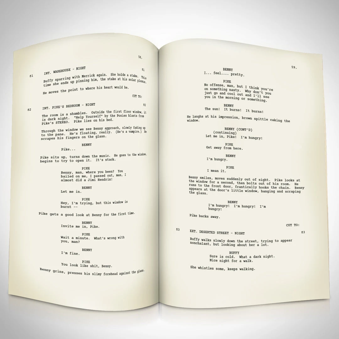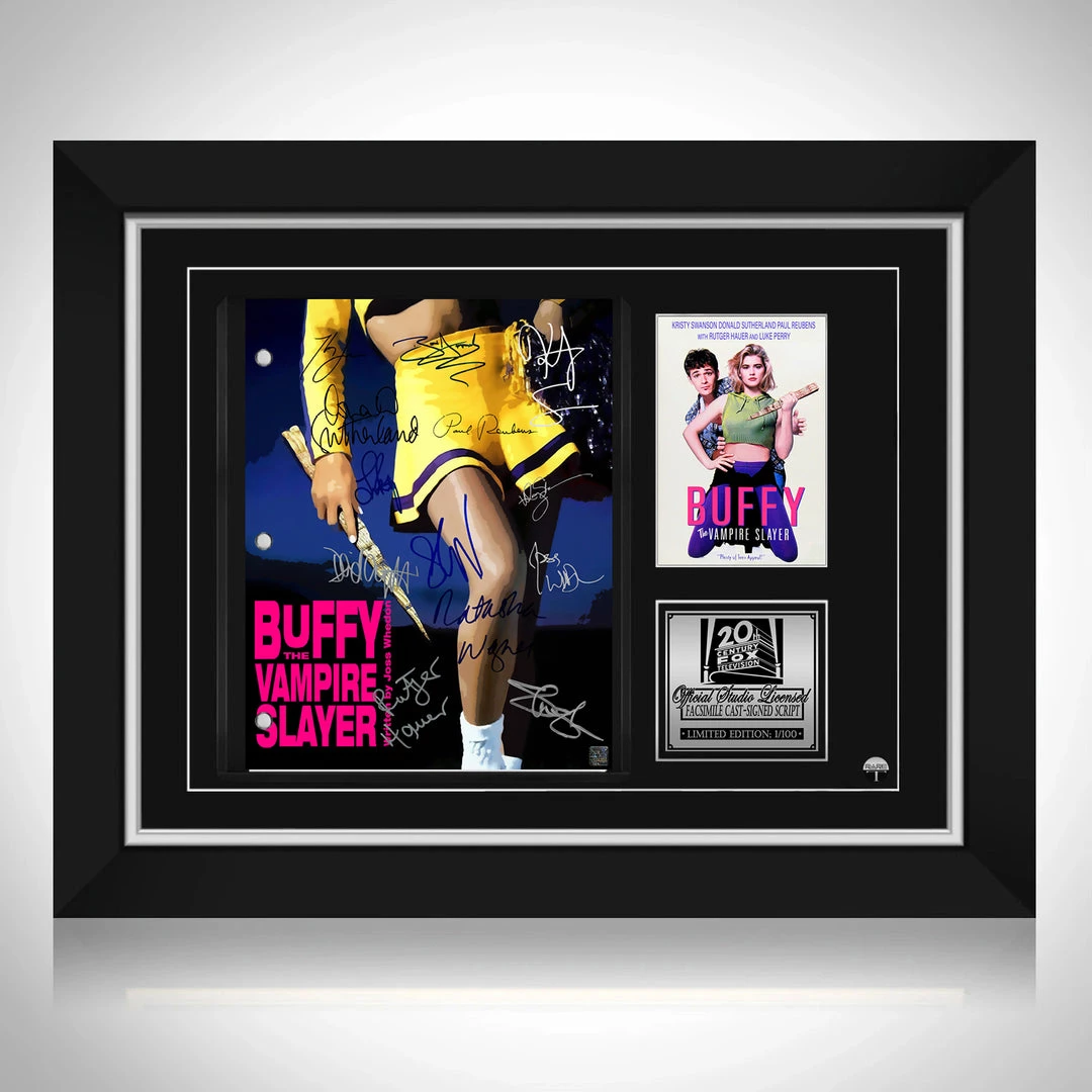 Pay homage to Buffy the Vampire Slayer , with this 20th Century Fox fully licensed facsimile of the official signed movie script, originally signed by actors Joss Whedon, Kristy Swanson, Donald Sutherland, Paul Reubens, Rutger Hauer, Luke Perry, Hillary Swank, David Arquette, Stephen Root, Thomas Jane, Ben Affleck, Natasha Gregson, Seth Green & Slash , of which is strictly limited to 100 units Worldwide and has been approved and numbered accordingly.