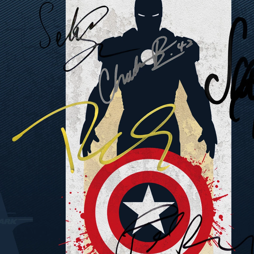 Pay homage to Captain America Civil War , with this Marvel Studios fully licensed facsimile of the official signed movie script, originally signed by Stan Lee, Chris Evans, Robert Downey Jr., Scarlett Johansson, Chadwick Boseman, Sebastian Stan, Paul Rudd & Tom Holland , of which is strictly limited to 100 units Worldwide and has been approved and numbered accordingly.