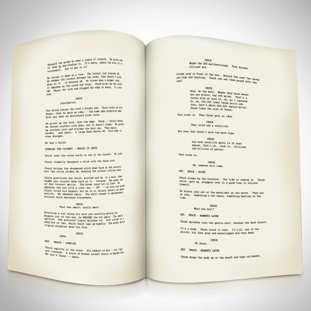— Collector Grade Proprietary Exclusive VELVET TOUCH water/scratch resistant cover. — Collectible Facsimile of Original Hand-Signed Cast Away movie Script Custom Frame.