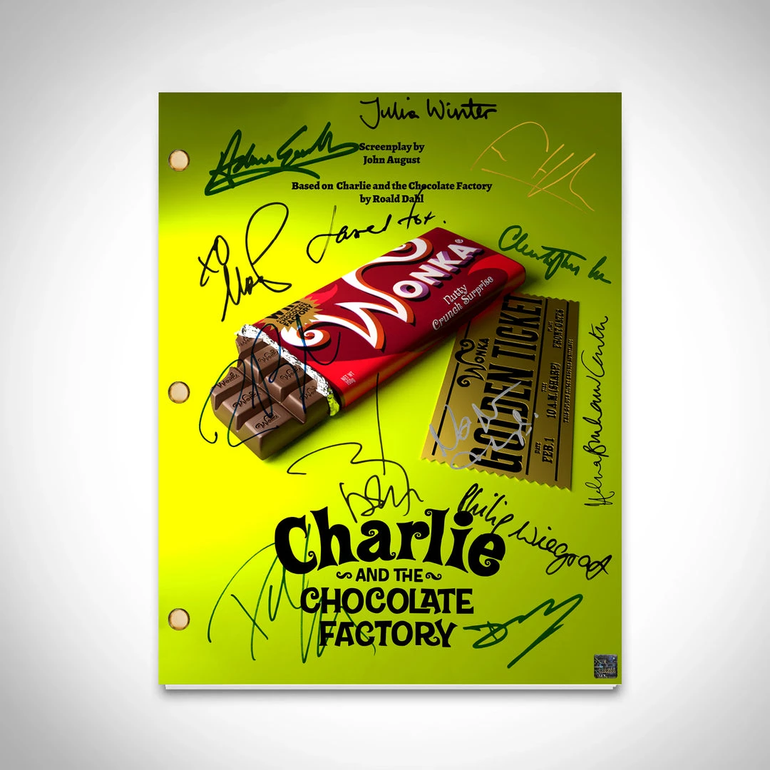 Pay homage to Charlie and the Chocolate Factory (2005) , with this Warner Bros Pictures fully licensed facsimile of the official signed movie Transcript , originally signed by actors Tim Burton, Johnny Depp, Freddie Highmore, David Kelly, Helena Bonham Carter, Noah Taylor, Missi Pyle, Deep Roy, Christoper Lee, Adam Godley, Danny Elfman, James Fox, Julia Winter & Philip Wiegratz , of which is strictly limited to 100 units Worldwide and has been approved and numbered accordingly.