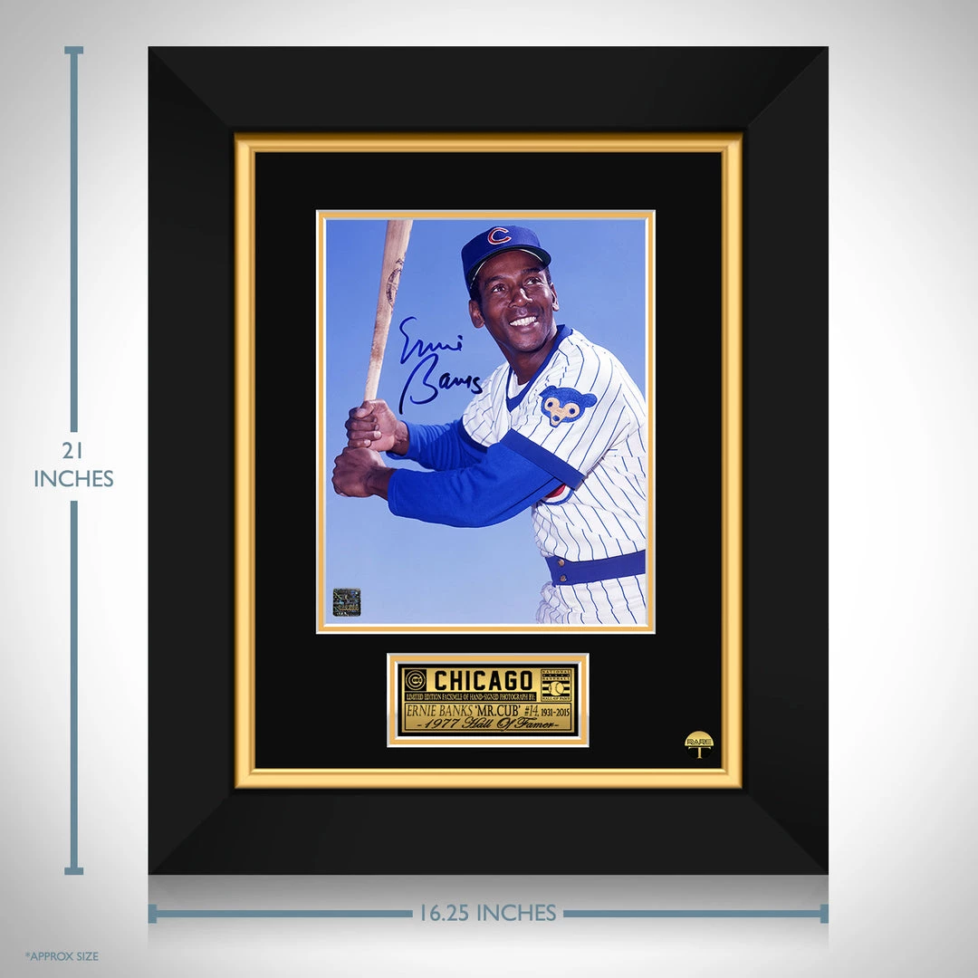 Pay homage to Chicago Cubs with this gallery-framed, officially licensed, limited edition facsimile of hand-signed photo, originally signed by Ernie Banks ‘Mr. Cub’, of which is strictly limited to 100 units Worldwide, and has been approved and numbered accordingly.