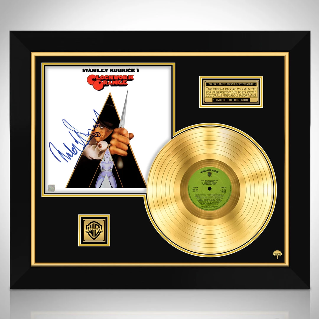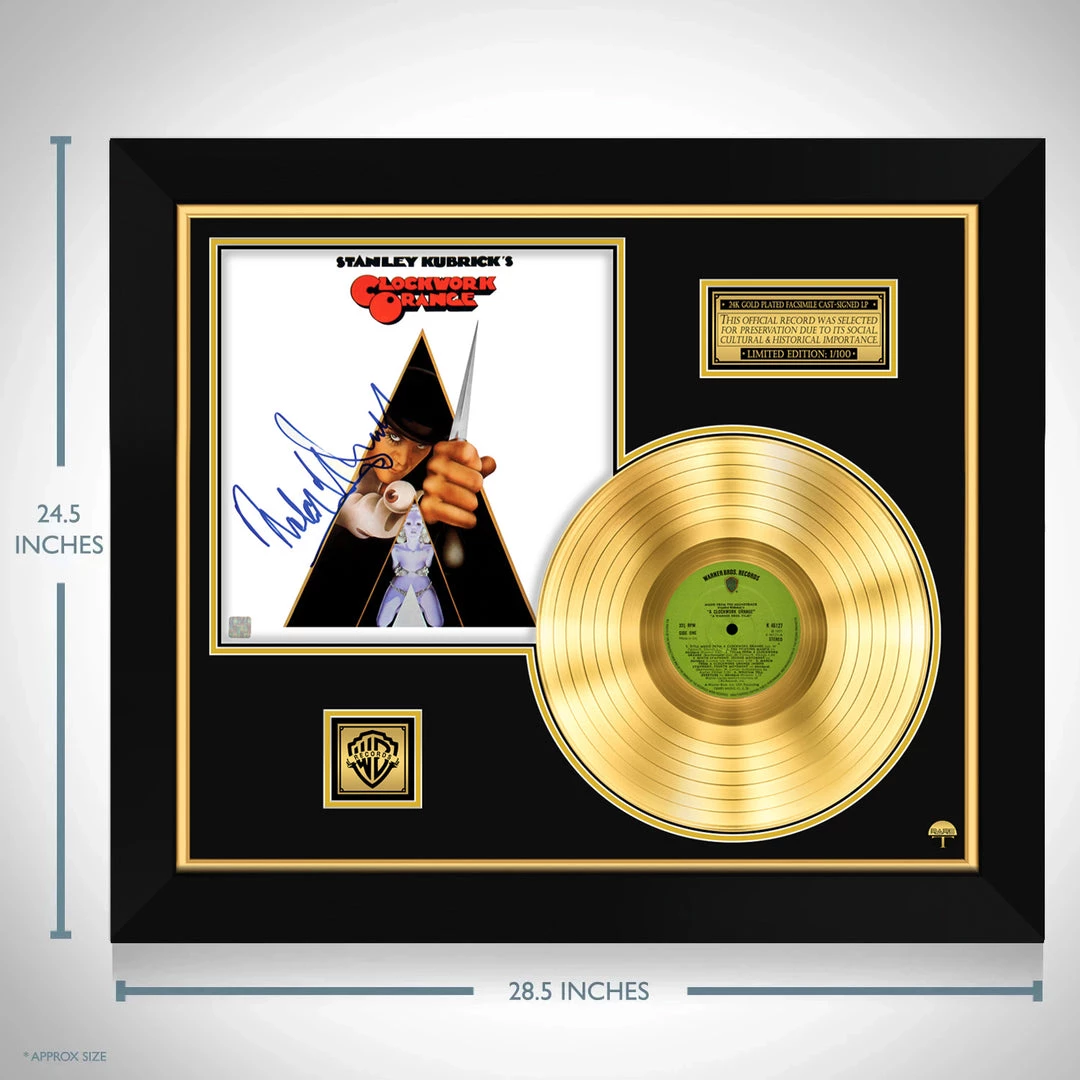 Pay homage to one of the most controversial films of all time, Clockwork Orange, with this gallery-framed, authentic, Warner Bros. Records fully licensed facsimile of the official Hand-Signed 24k Gold Plated LP Record and LP Cover Clockwork Orange Motion Picture Soundtrack, originally signed by actor Malcolm McDowell, of which is strictly limited to 100 units Worldwide and has been approved and numbered accordingly.