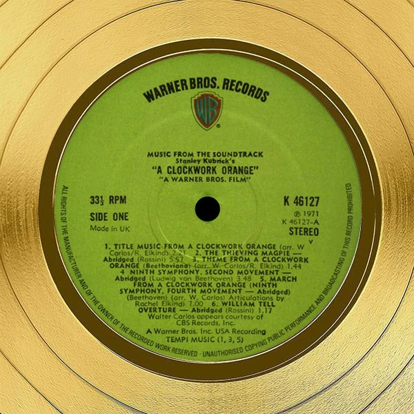 ฦ?? Collectible Clockwork Orange Motion Picture Soundtrack facsimile of hand-signed 24k Gold Plated LP Custom Frame