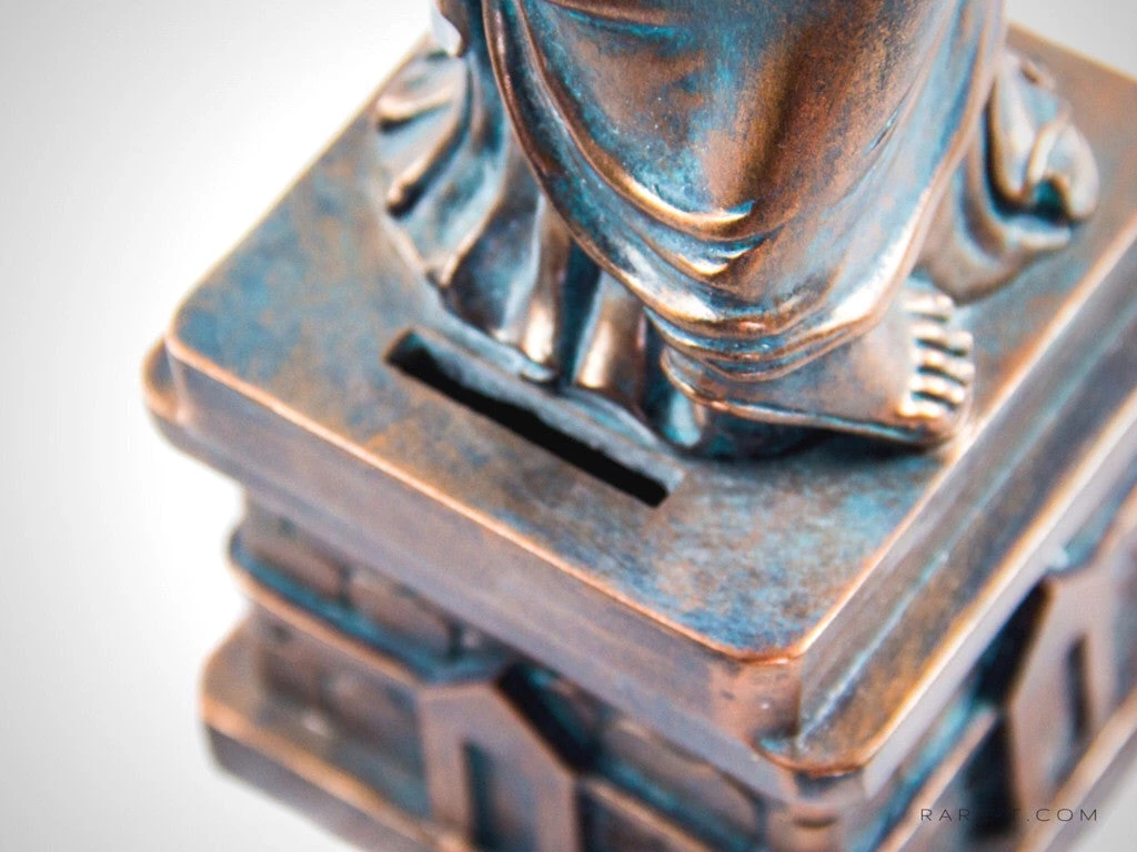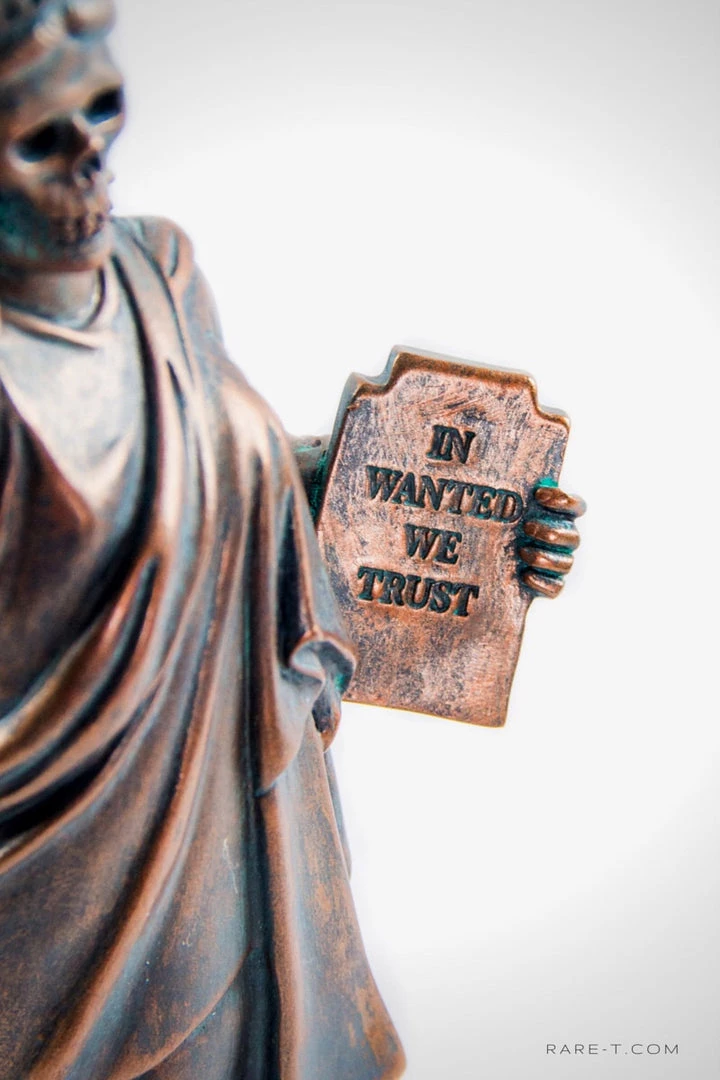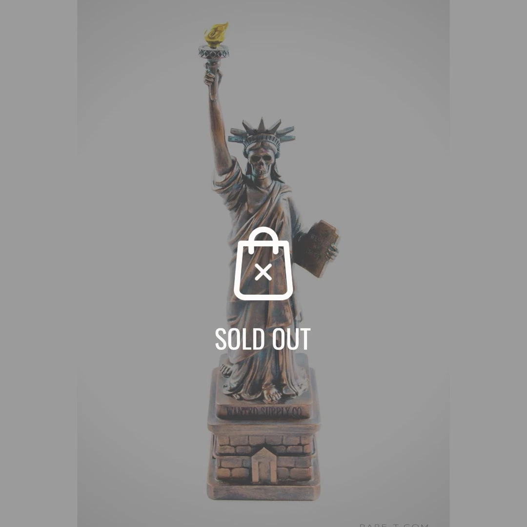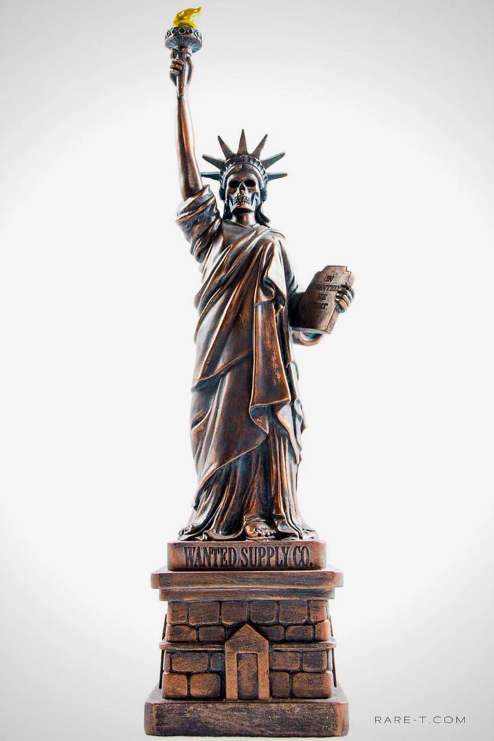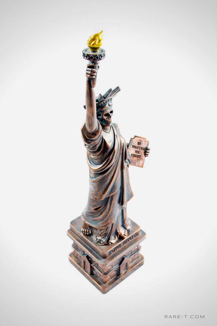 Standing almost 16 inches tall with great attention to detail, hand-painted to emulate the original’s aged verdigris patina – you’d swear you were in NEW YORK looking at the real STATUE OF LIBERTY.…aside from the death head that’s staring back at you that is.