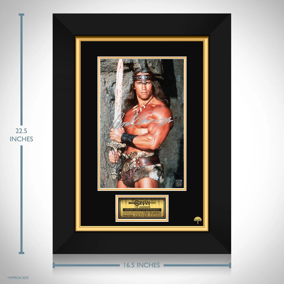 Pay homage to Conan The Barbarian, with this gallery-framed, officially licensed, limited edition facsimile of the Hand-Signed photo, originally signed by Arnold Schwarzenegger & Oliver Stone, of which is strictly limited to 100 units Worldwide, and has been approved and numbered accordingly.