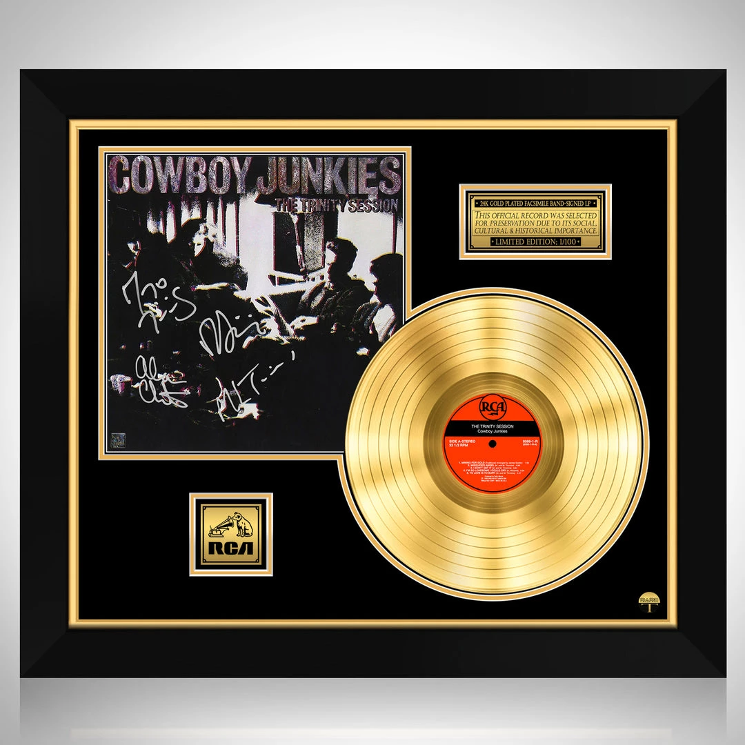 Pay homage to one of the most iconic alternative country and folk rock band of all time Cowboy Junkies , with this gallery-framed, authentic RCA Records fully licensed facsimile of the official Hand-Signed 24K Gold LP Record and LP Cover The Trinity Session Originally signed by Cowboy Junkies , of which is strictly limited to 100 units Worldwide and has been approved and numbered accordingly.