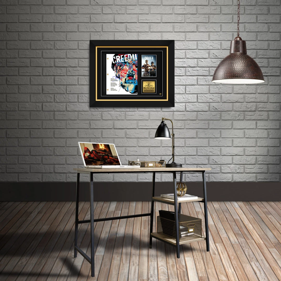 — Collector Grade Proprietary Exclusive VELVET TOUCH water/scratch resistant cover. — Collectible Facsimile of Original Hand-Signed Creed 2 movie Script Custom Frame.