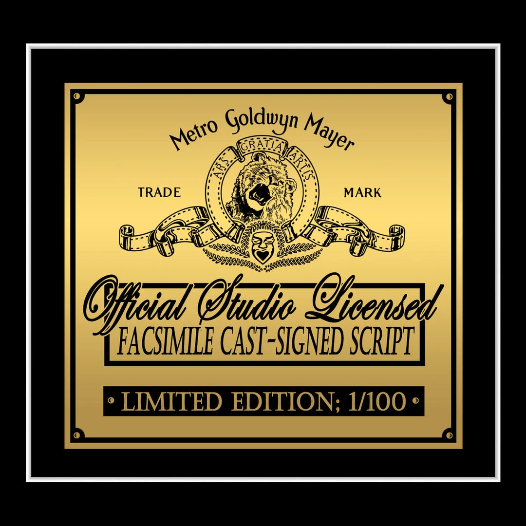 When framed, the script facsimile and still photograph and are both professionally mounted in the highest quality triple acid-free matted shadow box frame, using our exclusive lightweight custom engineered UV/Warping/Humidity/Fading resistant mouldings, metallic fillet trim and finished with lightweight protective glass to keep it looking pristine.