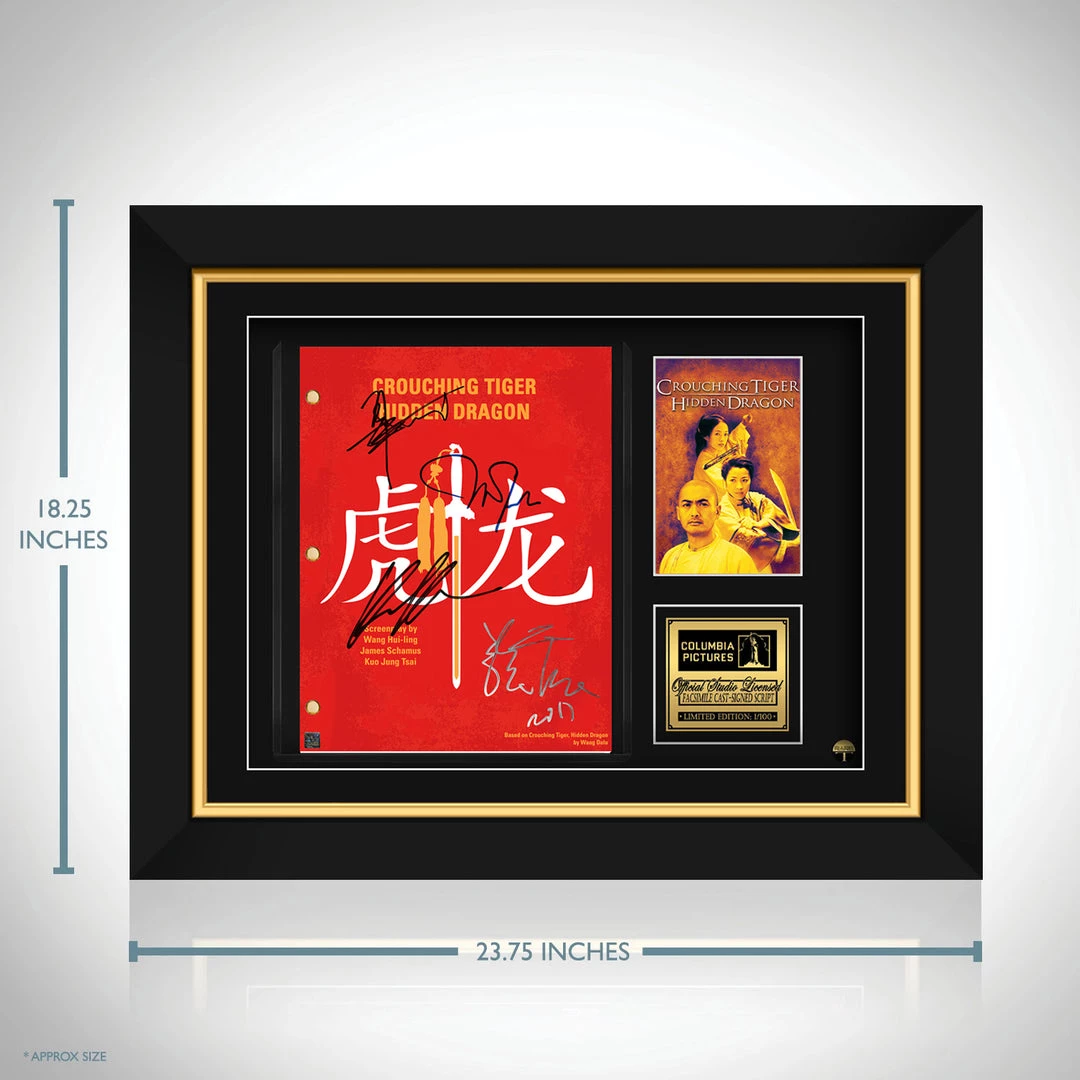 — Collector Grade Proprietary Exclusive VELVET TOUCH water/scratch resistant cover. — Collectible Facsimile of Original Hand-Signed Crouching Tiger Hidden Dragon movie Script Custom Frame.