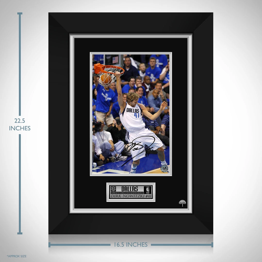 Pay homage to Dallas Mavericks with this gallery-framed, officially licensed, limited edition facsimile of hand-signed photo, originally signed by Dirk Nowitzki, of which is strictly limited to 100 units Worldwide, and has been approved and numbered accordingly.