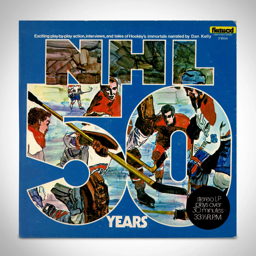 Pay homage to the late, great Dan Kelly, who was a Canadian Sportscaster, with this Vintage NHL 50 Years Stereo LP 33 1/3. Exciting play-by-play action, interviews and tales of Hockey’s immortals narrated by Dan Kelly.