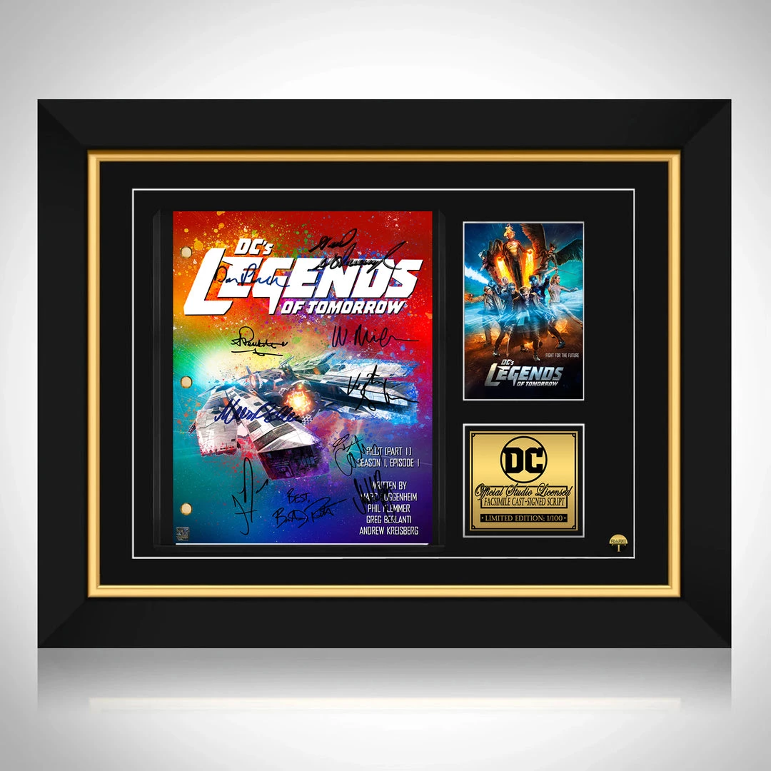 Pay homage to DC Legends of Tomorrow , with this DC fully licensed facsimile of the official signed movie script, originally signed by actors Caity Lotz, Amy Louise Pemberton, Dominic Purcell, Brandon Routh, Nick Zano, Maisie Richardson-Sellers, Victor Garber, Matt Ryan, Wentworth Miller & Neal McDonough , of which is strictly limited to 100 units Worldwide and has been approved and numbered accordingly.