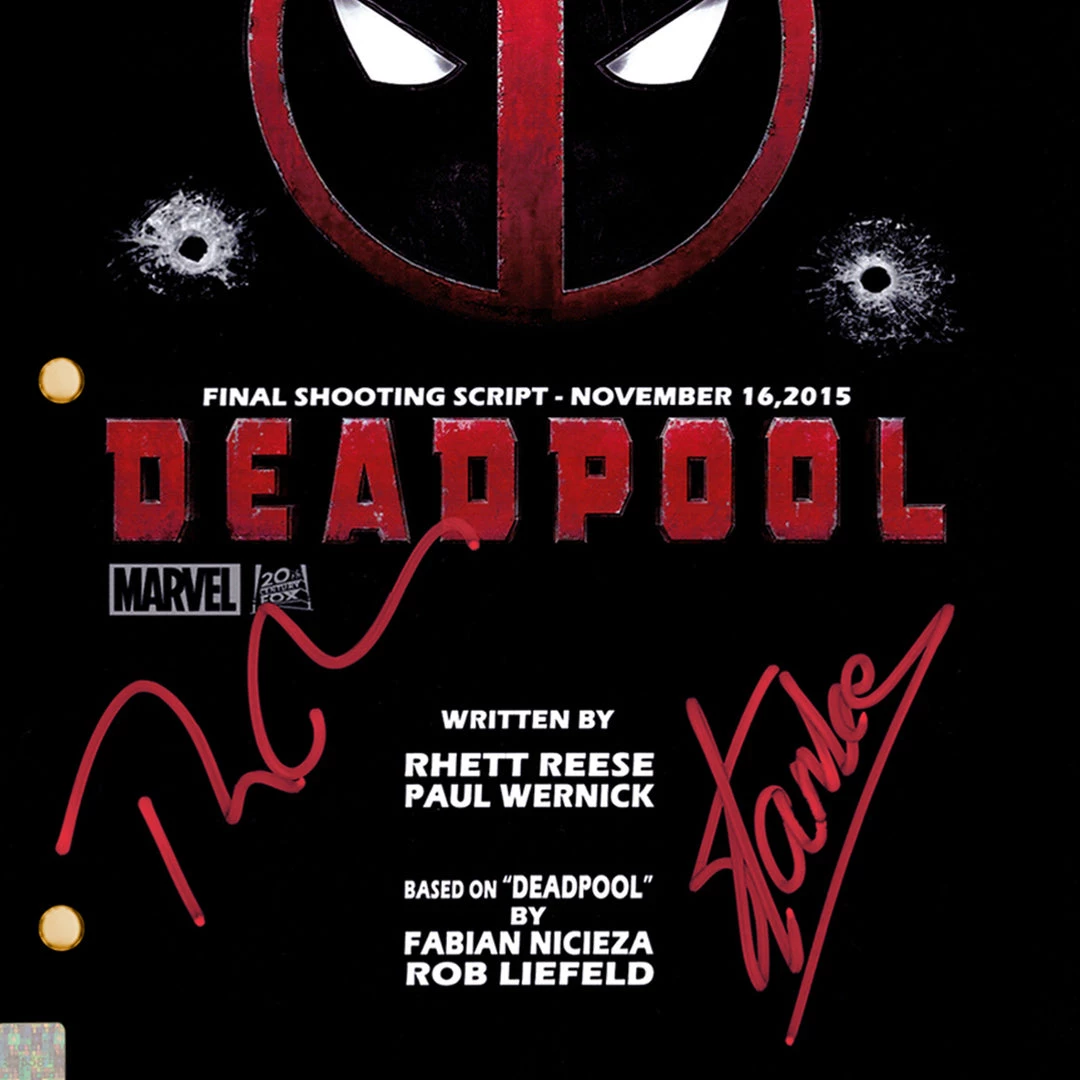 Pay homage to Deadpool , with this 20th Century Fox / Marvel Studios  fully licensed facsimile of the official signed movie script, originally signed by actors Ryan Reynolds and the late Marvel co-creator Stan Lee , of which is strictly limited to 100 units Worldwide and has been approved and numbered accordingly.