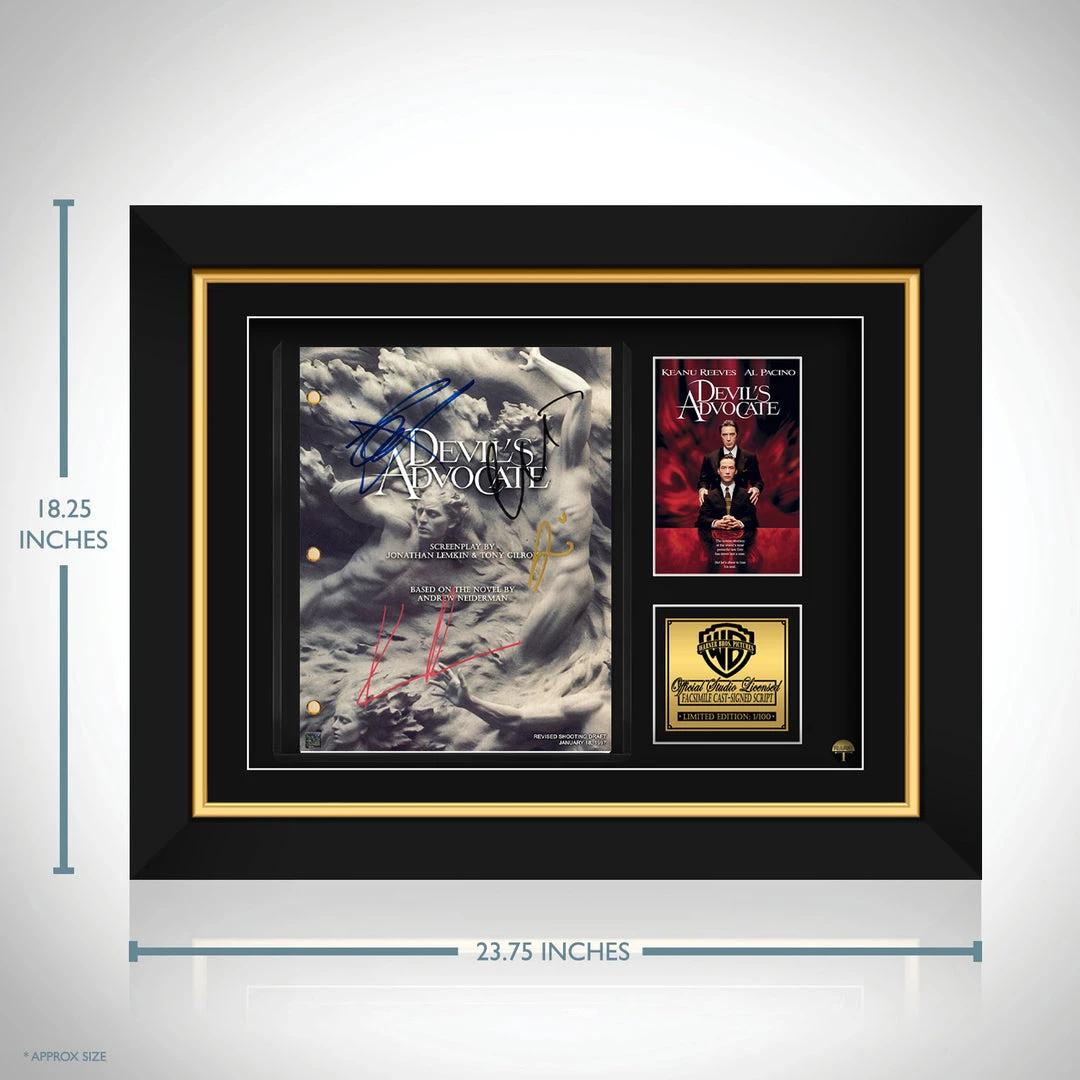 Pay homage to Devil’s Advocate , with this Warner Bros fully licensed facsimile of the official signed movie script, originally signed by actors Keanu Reeves, Al Pacino, Charlize Theron & Connie Nielsen , of which is strictly limited to 100 units Worldwide and has been approved and numbered accordingly.