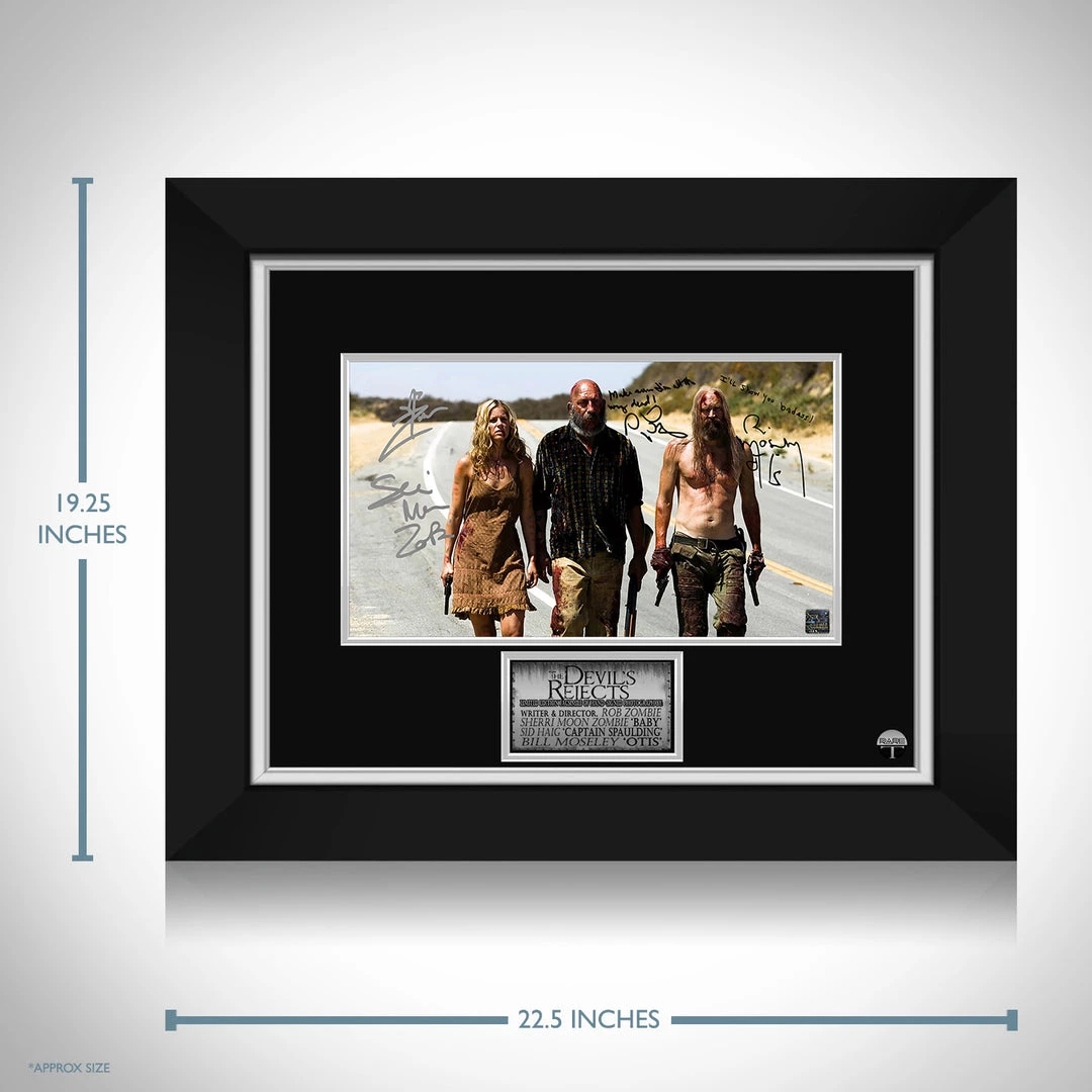 Pay homage to one of the most iconic movie of all time, Devil’s Rejects, with this gallery-framed, officially licensed, limited edition facsimile of hand-signed photo, originally signed by Rob Zombie, Sherri Moon Zombie, Sid Haig and Bill Moseley, of which is strictly limited to 100 units Worldwide, and has been approved and numbered accordingly.