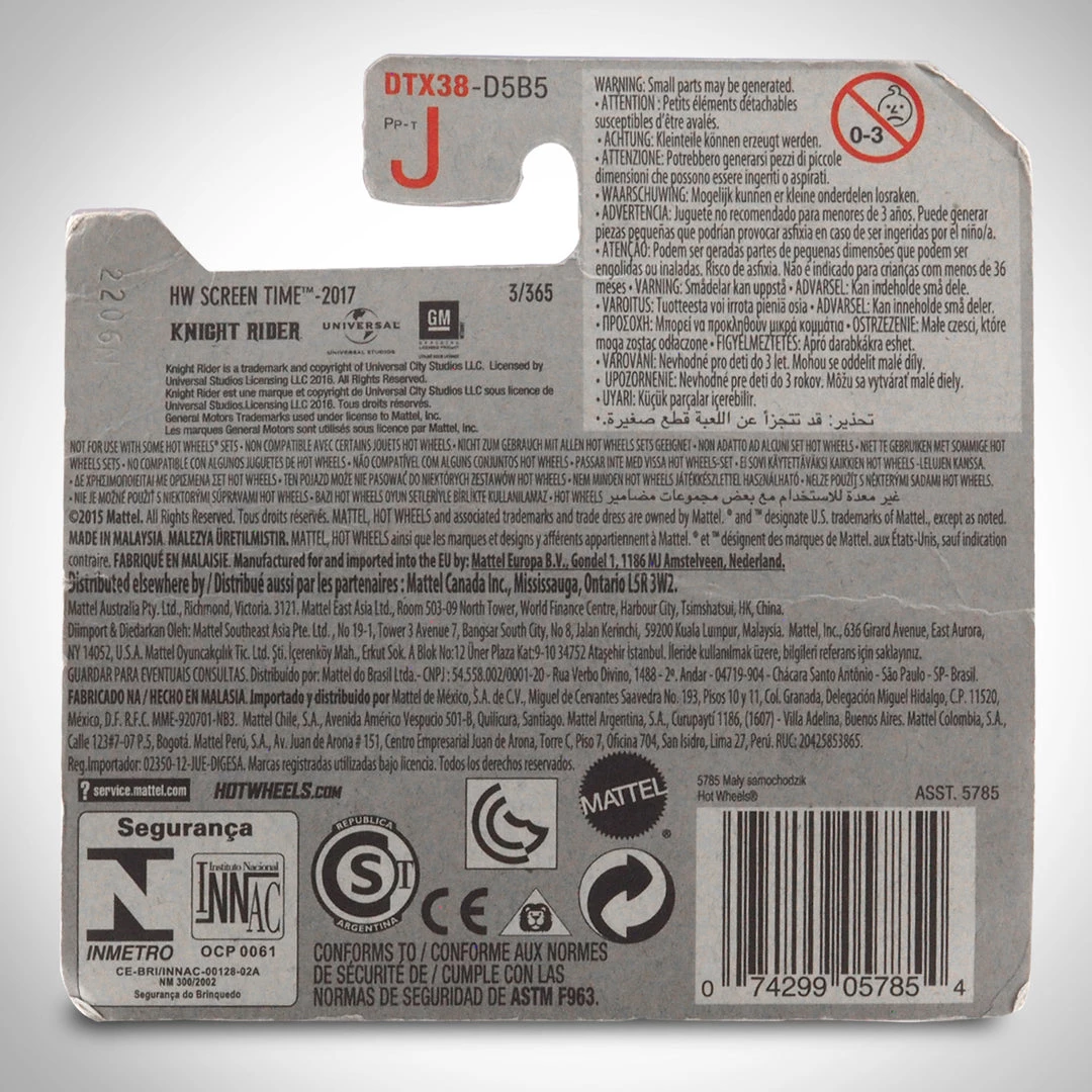 Pay homage to The Knight Rider with this fully licensed by Mattel, Hot Wheels 2017 K.I.T.T. HW Screen Time Black 1/64 Die-Cast Car.
