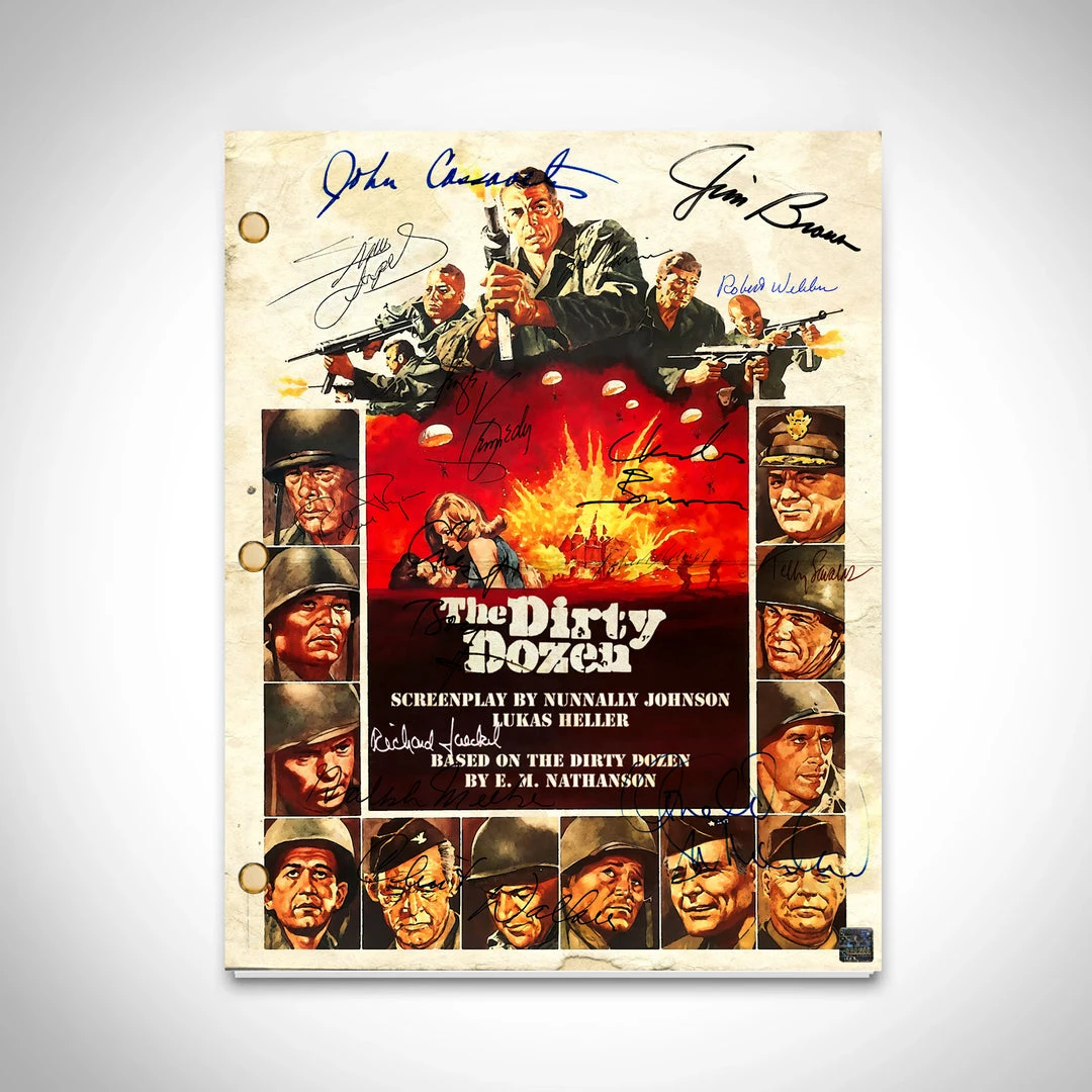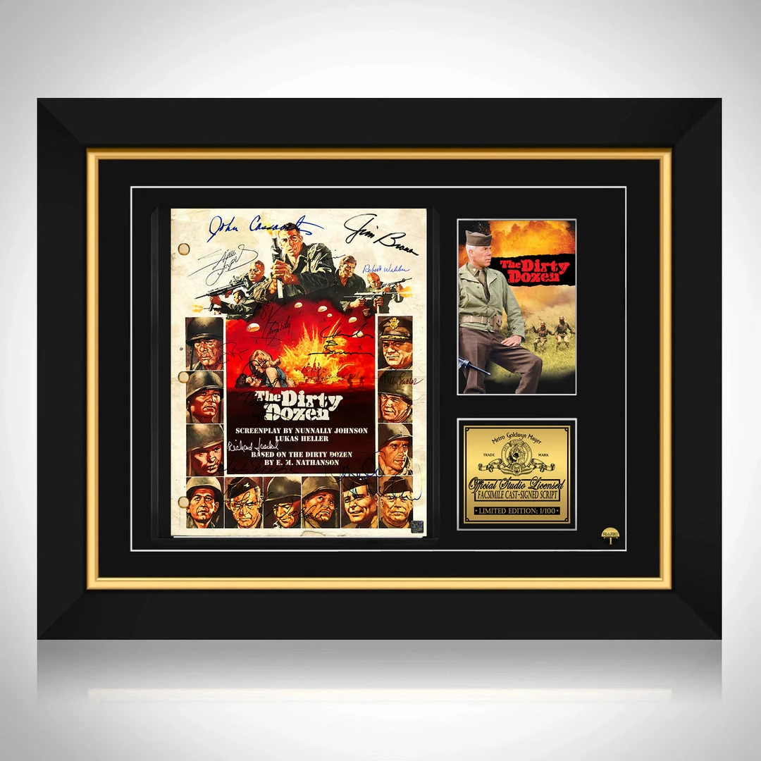 Pay homage to Dirty Dozen , with this MGM Studios fully licensed facsimile of the official signed movie Transcript , originally signed by actors Robert Aldrich, Lee Marvin, Ernest Borgnine, Charles Bronson, Jim Brown, John Cassavetes, Richard Jaeckel, George Kennedy, Trini Lopez, Ralph Meeker, Robert Ryan, Telly Savalas, Clint Walker, Robert Webber & Donald Sutherland , of which is strictly limited to 100 units Worldwide and has been approved and numbered accordingly.