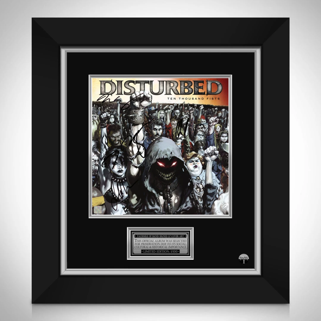 Pay homage to one of the best heavy rock bands of all time, Disturbed, with this gallery-framed, officially licensed, limited edition facsimile of the Hand-Signed, Ten Thousand Fists LP Cover originally signed by band members vocalist David Draiman, guitarist/keyboardist Dan Donegan, bassist John Moyer & drummer Mike Wengren, of which is strictly limited to 100 units Worldwide, and has been approved and numbered accordingly.