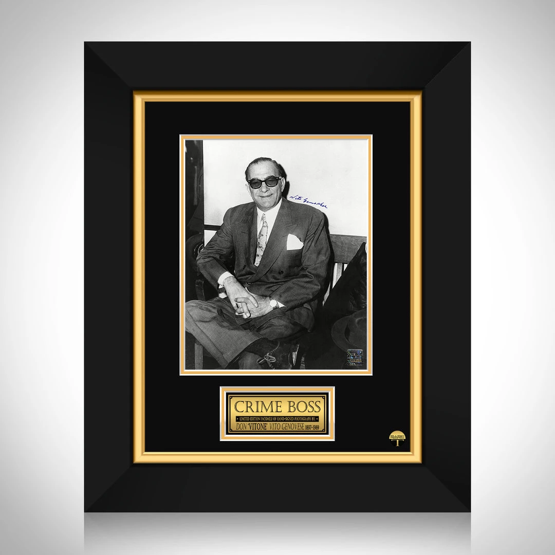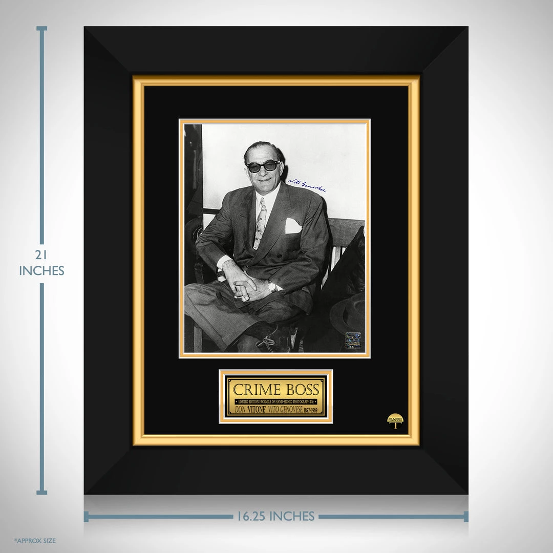 Pay homage to Don Vito Genovese, with this gallery-framed, officially licensed, limited edition facsimile of the Hand-Signed photo, originally signed by Don Vito Genovese, of which is strictly limited to 100 units Worldwide, and has been approved and numbered accordingly.