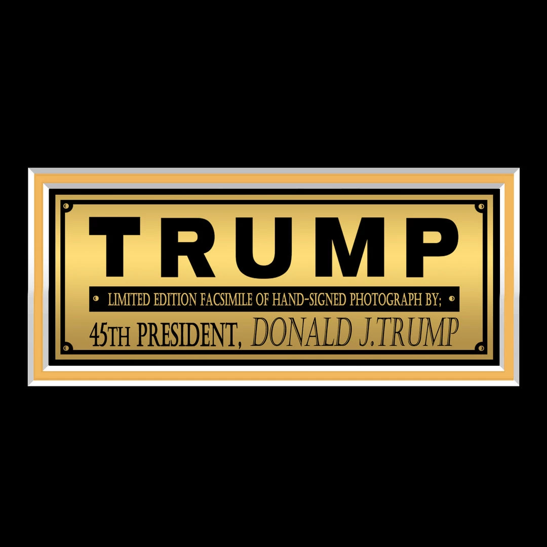 Pay homage to the 45th President of The United States Donald Trump, with this gallery-framed, officially licensed, limited edition facsimile of the Hand-Signed promo photo, originally signed by Donald Trump, of which is strictly limited to 100 units Worldwide, and has been approved and numbered accordingly.