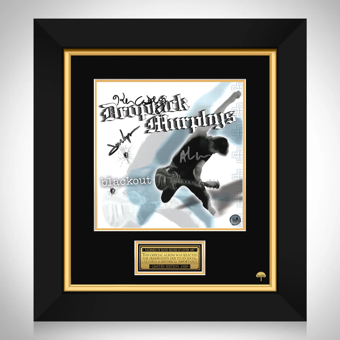 Pay homage to one of the most iconic American Celtic punk band of all time, Dropkick Murphys , with this gallery-framed, officially licensed, limited edition facsimile of the Hand-Signed Blackout LP Cover originally signed by Al Barr, Ken Casey, Matt Kelly & James Lynch , of which is strictly limited to 100 units Worldwide, and has been approved and numbered accordingly.