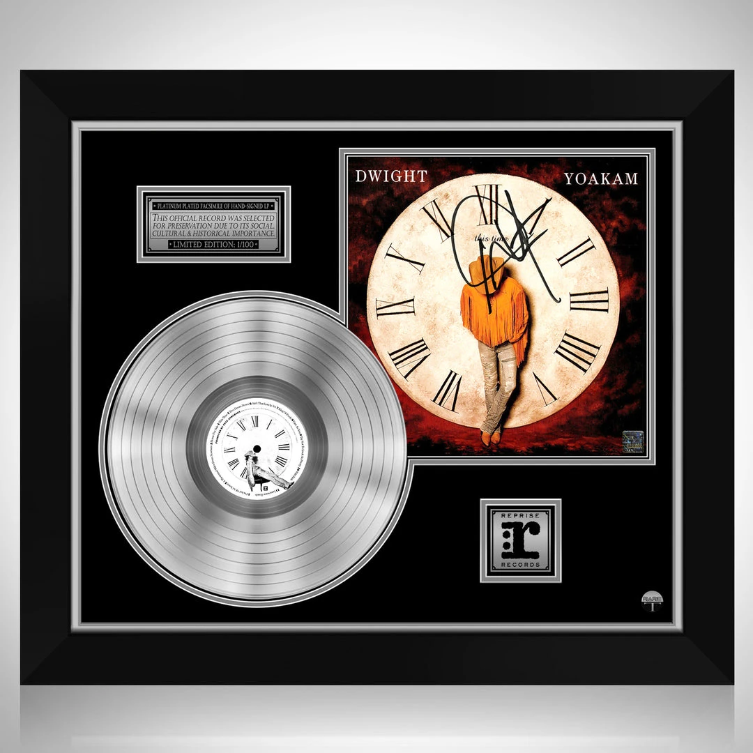 Pay homage to one of the most iconic American Country singer-songwriter and musician of all time Dwight Yoakam , with this gallery-framed, authentic Reprise Records fully licensed facsimile of the official Hand-Signed Platinum Plated LP Record and LP Cover This time Originally signed by Dwight Yoakam , of which is strictly limited to 100 units Worldwide and has been approved and numbered accordingly.