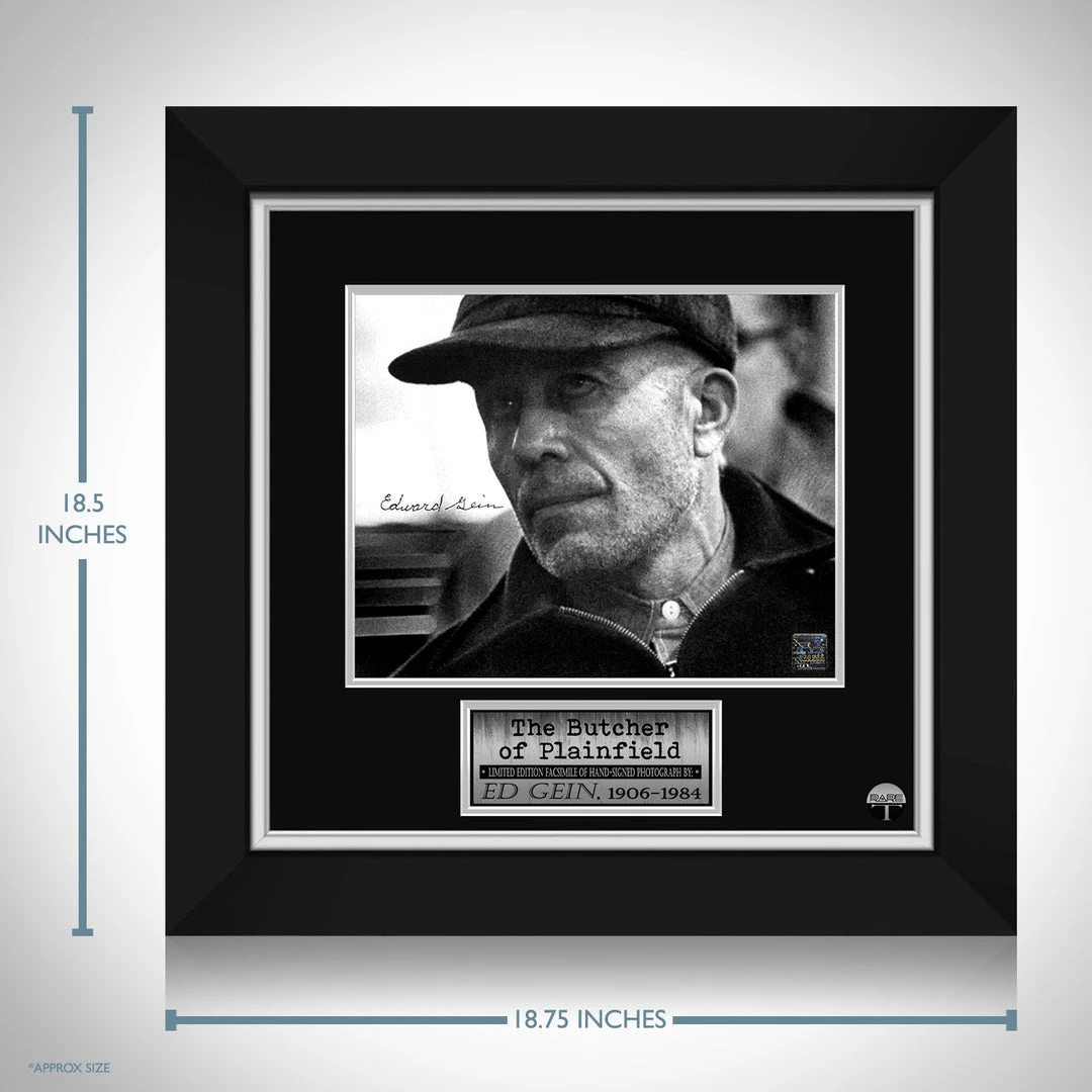Pay homage to Ed Gein, with this gallery-framed, officially licensed, limited edition facsimile of the Hand-Signed photo, originally signed by Ed Gein, of which is strictly limited to 100 units Worldwide, and has been approved and numbered accordingly.