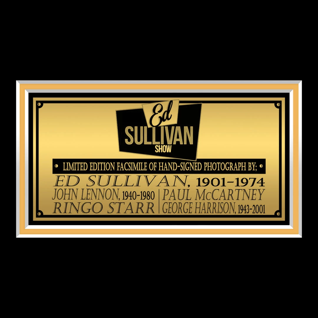 Pay homage to Ed Sullivan Show & The Beatles  with this gallery-framed, officially licensed, limited edition facsimile of the Hand-Signed photo, originally signed by Ed Sullivan, John Lennon, Paul McCartney, Ringo Starr & George Harrison, of which is strictly limited to 100 units Worldwide, and has been approved and numbered accordingly.