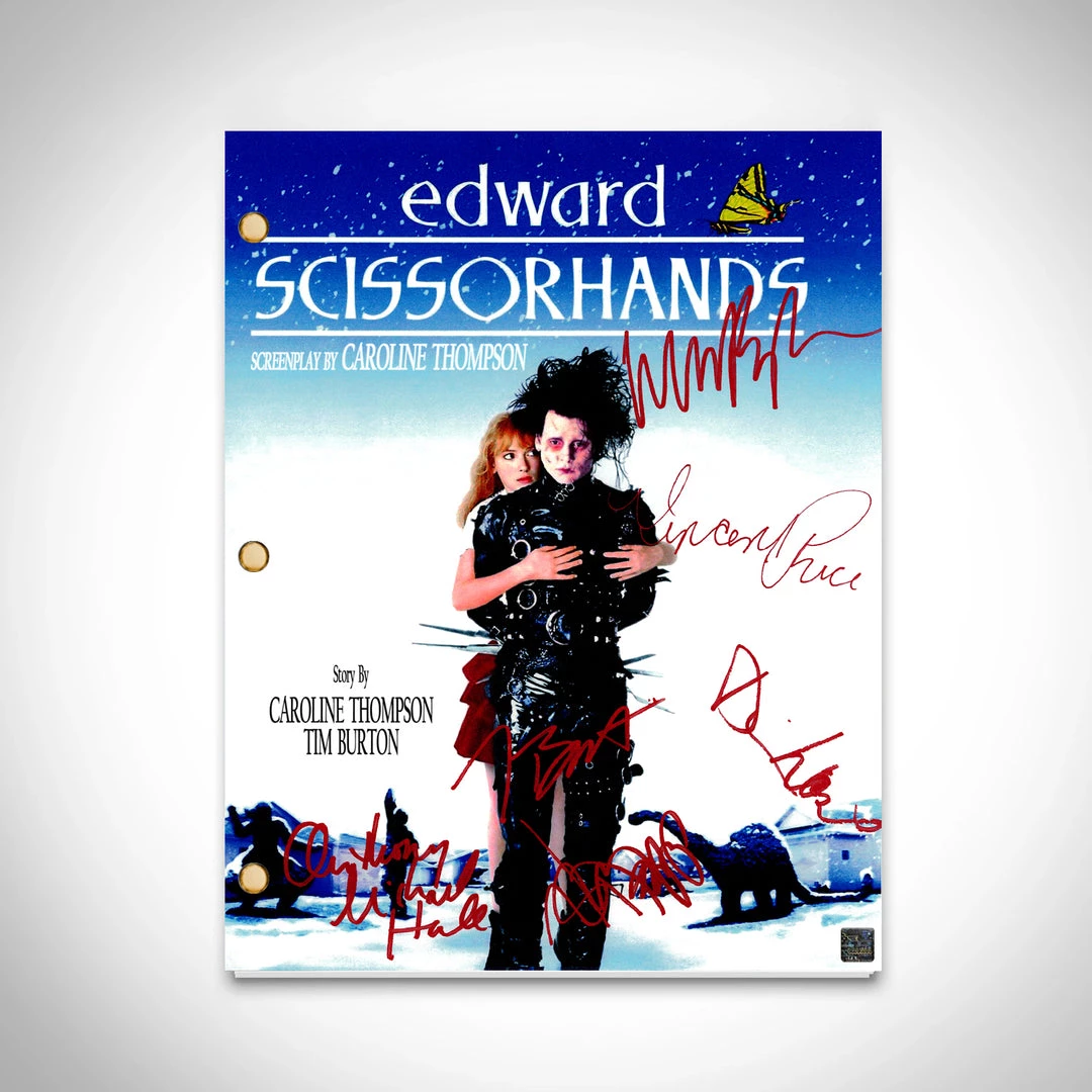Pay homage to Edward Scissorhands , with this 20th Century Fox  fully licensed facsimile of the official signed movie script, originally signed by actors Johnny Depp, Tim Burton, Winona Ryder, Anthony Michael Hall & Vincent Price , of which is strictly limited to 100 units Worldwide and has been approved and numbered accordingly.
