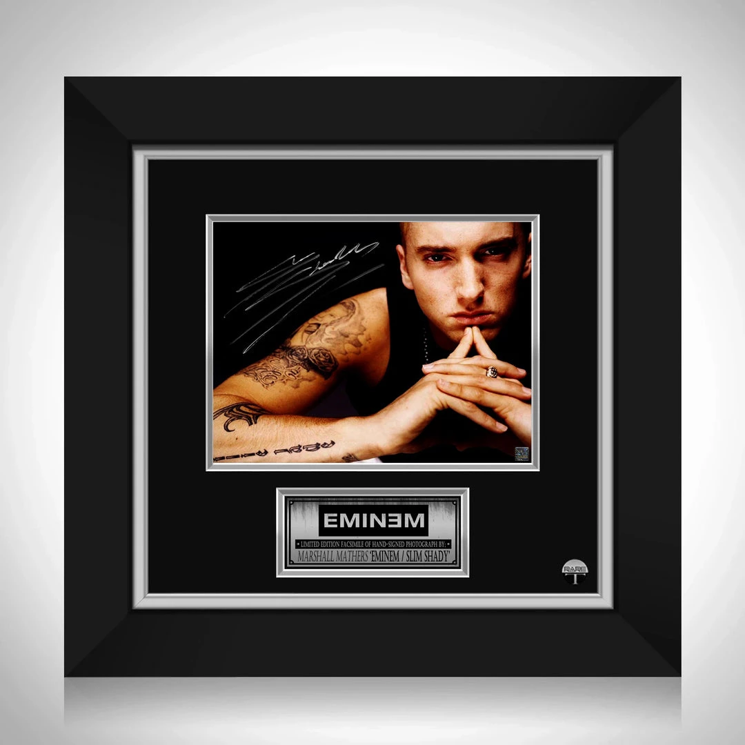 — Collectible Eminem facsimile of hand-signed photo custom frame.
