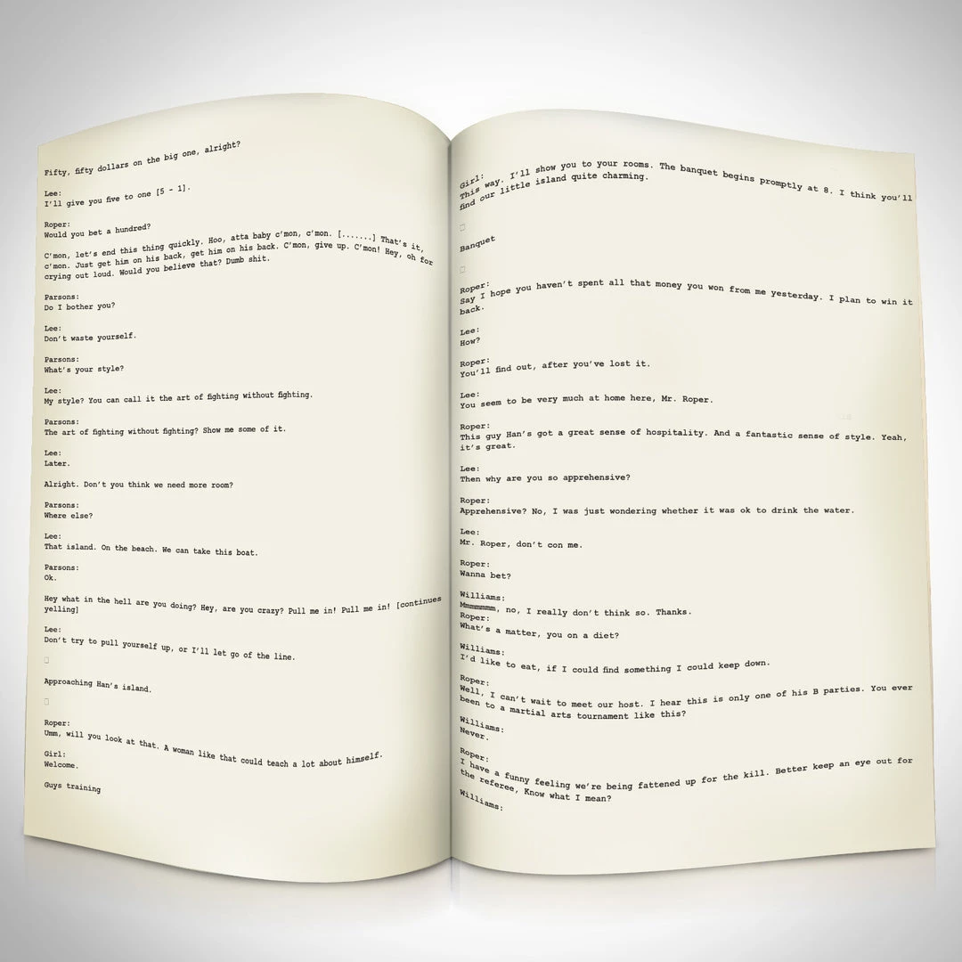 Pay homage to Enter the Dragon , with this Warner Bros. fully licensed facsimile of the official signed martial art movie transcript, originally signed by actors Bruce lee, John Saxon, Bolo Yeung & Jackie Chan , of which is strictly limited to 100 units Worldwide and has been approved and numbered accordingly.