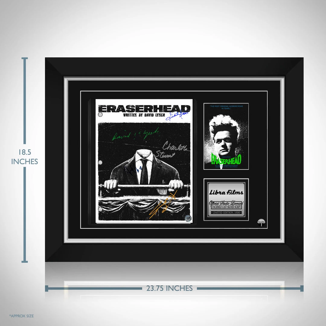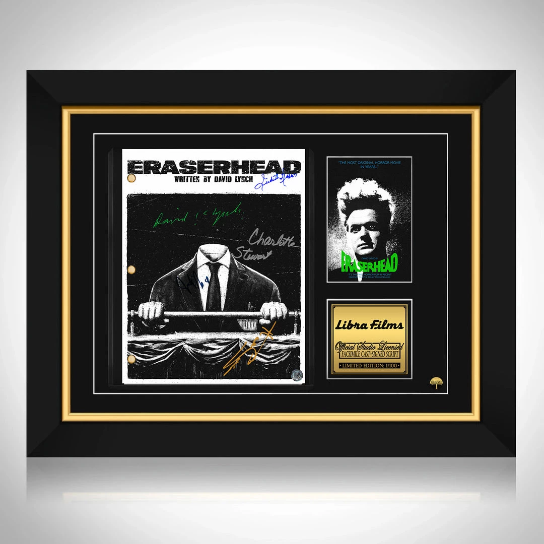 Pay homage to Eraserhead , with this Libra Films fully licensed facsimile of the official signed movie script, originally signed by actors David Lynch, Jack Nance, Charlotte Stewart, Judith Roberts & Hal Landon Jr. , of which is strictly limited to 100 units Worldwide and has been approved and numbered accordingly.