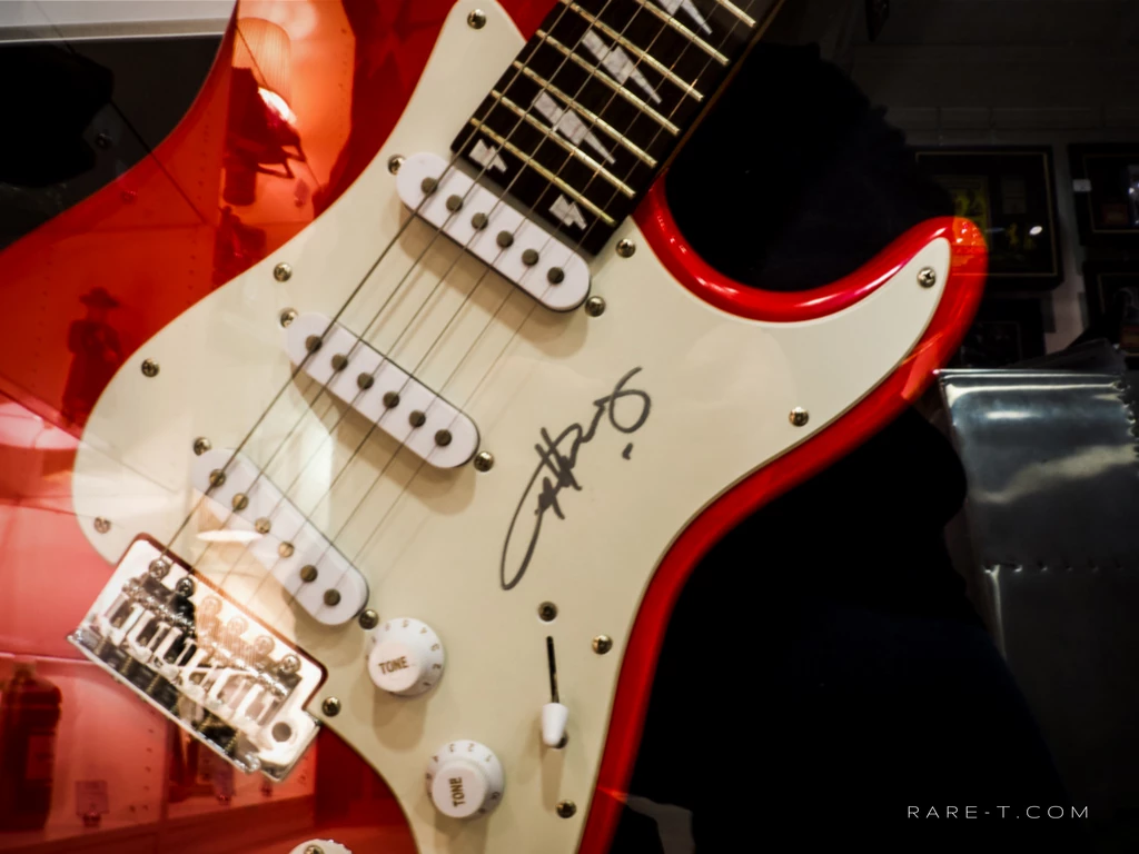 Impress everyone (including yourself!) with this RARE-T Exclusive ‘ANGUS YOUNG FROM AC/DC SIGNED GUITAR’ custom frame.