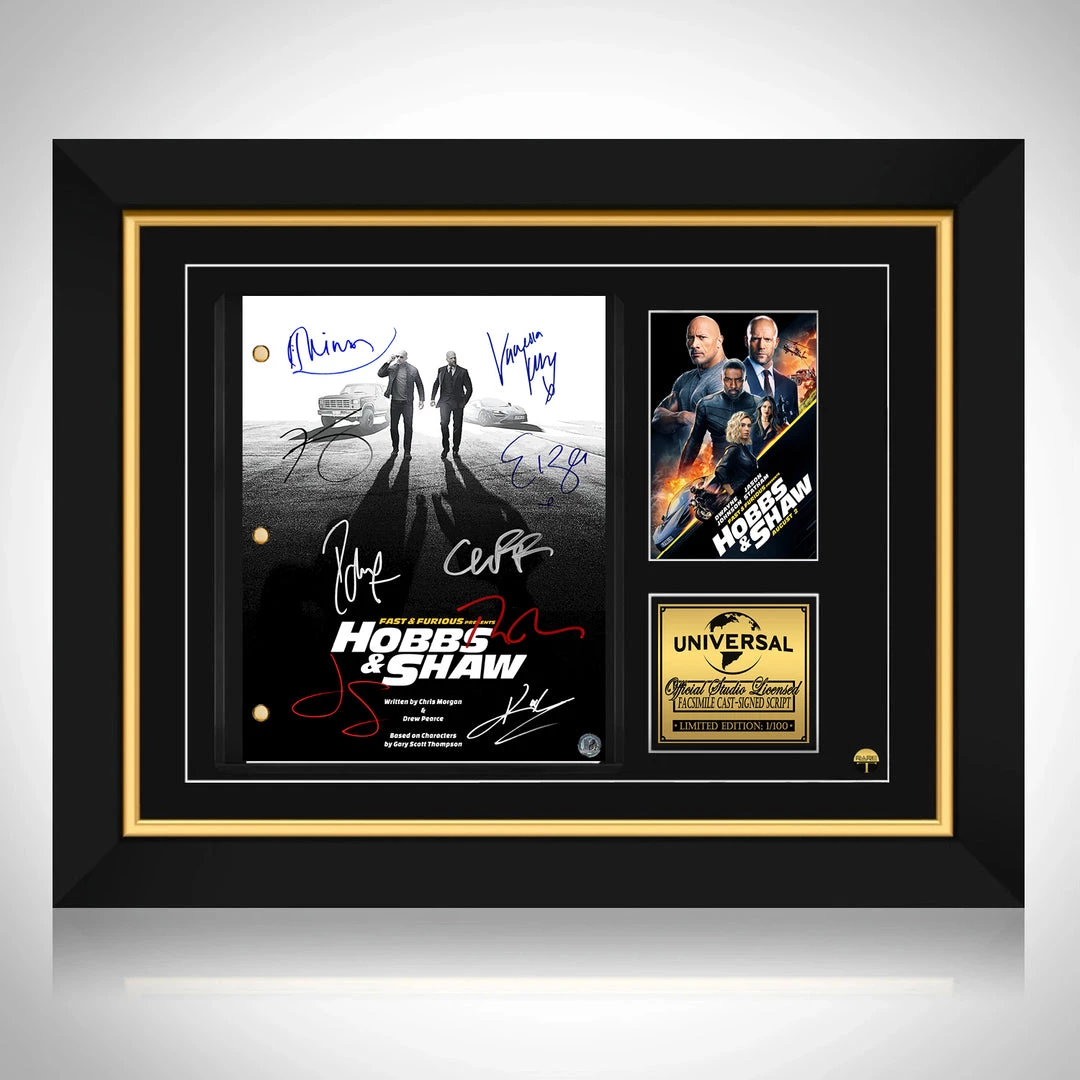 — Collectible Facsimile of Original Hand-Signed Fast & Furious Presents Hobbs & Shaw movie Script Custom Frame.