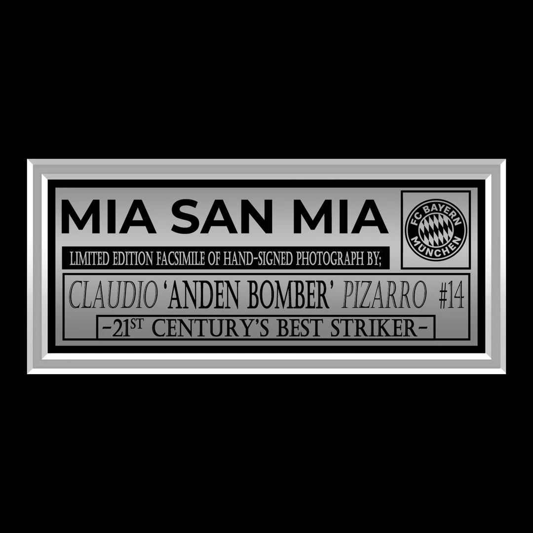 Pay homage to Claudio Pizarro with this gallery-framed, officially licensed, limited edition facsimile of the Hand-Signed photo, originally signed by Claudio Pizarro, of which is strictly limited to 100 units Worldwide, and has been approved and numbered accordingly.
