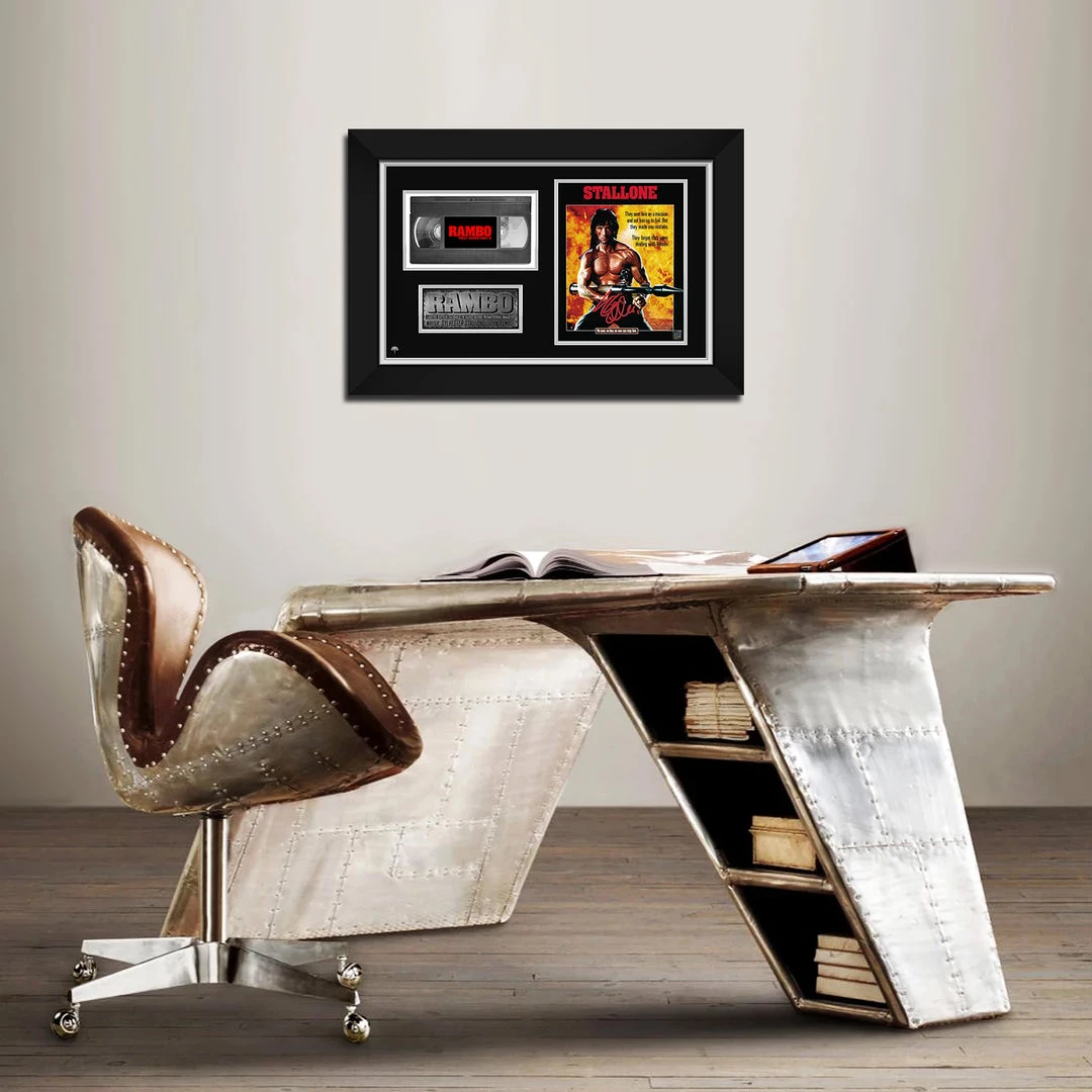 Pay homage to First Blood, with this gallery-framed, officially licensed, limited edition facsimile of hand-signed movie photo & VHS , originally signed by Sylvester Stallone, of which is strictly limited to 100 units Worldwide, and has been approved and numbered accordingly.