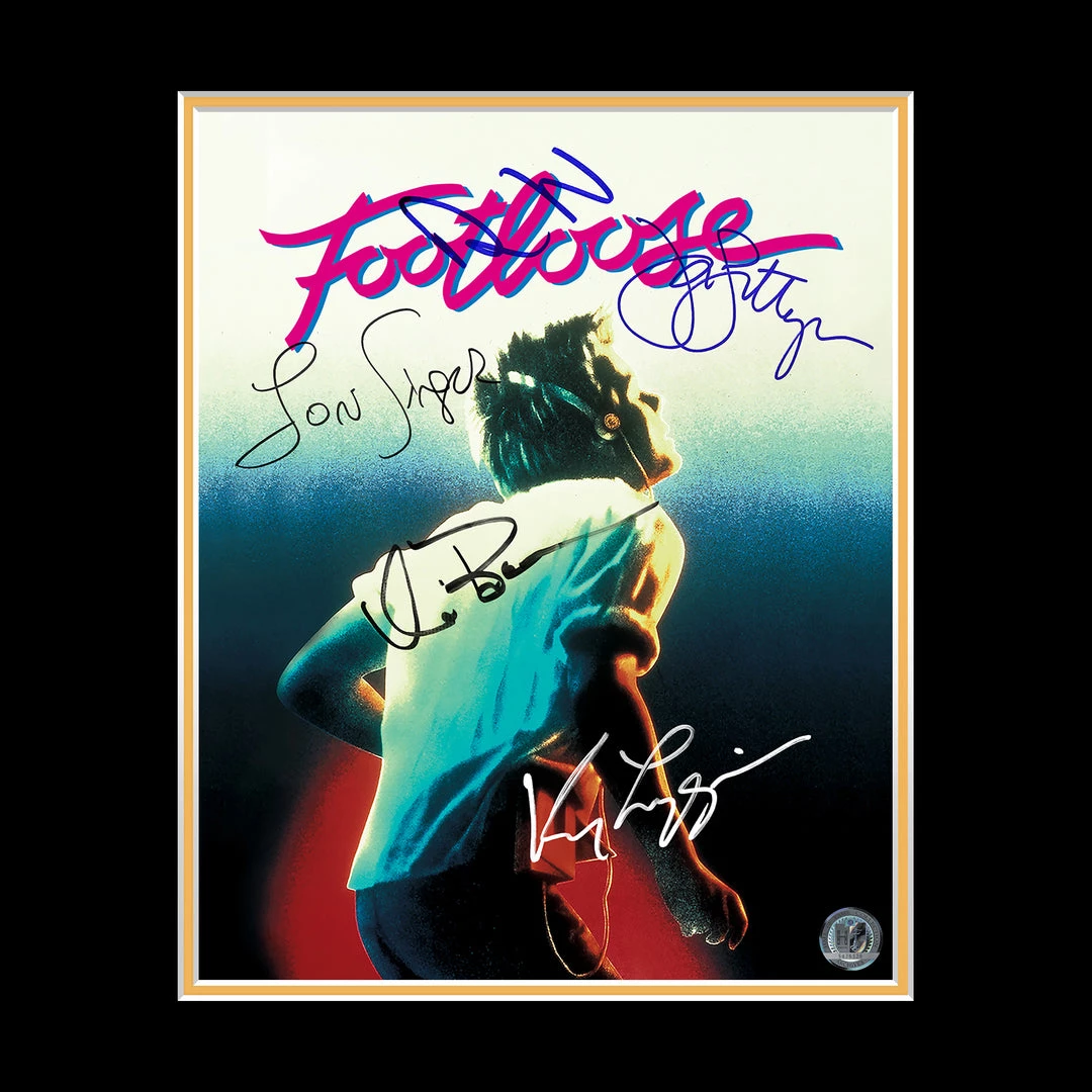 Pay homage to Footloose , with this gallery-framed, officially licensed, limited edition facsimile of hand-signed movie photo & VHS , originally signed by Lenny Loggins, Kevin Bacon, Lori Singer, John Lithgow & Diane Wiest, of which is strictly limited to 100 units Worldwide, and has been approved and numbered accordingly.