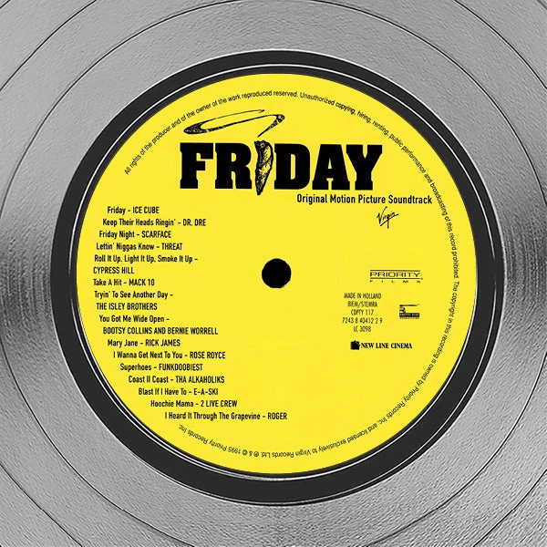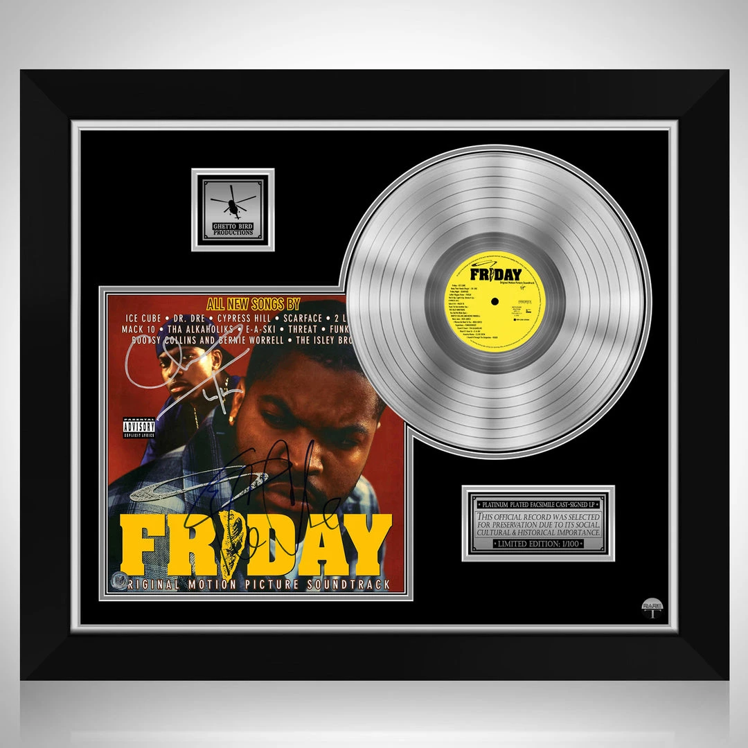 Pay homage to one of the most iconic movie of all time Friday , with this gallery-framed, authentic Priority Records fully licensed facsimile of the official Hand-Signed Platinum LP Record and LP Cover Original Motion Picture Soundtrack Originally signed by Ice Cube & Chris Tucker , of which is strictly limited to 100 units Worldwide and has been approved and numbered accordingly.