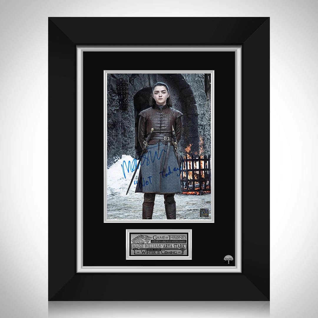 Pay homage to Game Of Thrones , with this gallery-framed, officially licensed, limited edition facsimile of hand-signed photo, originally signed by Maisie Williams, of which is strictly limited to 100 units Worldwide, and has been approved and numbered accordingly.