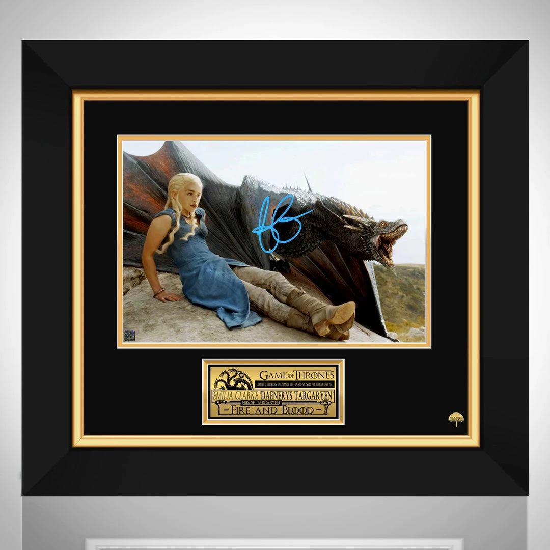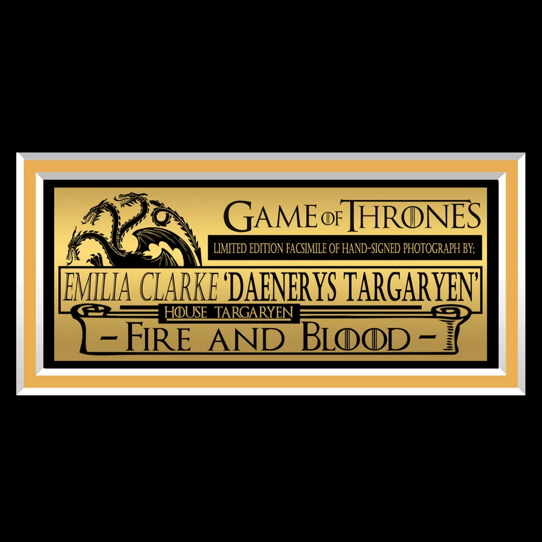 Pay homage to Game Of Thrones, with this gallery-framed, officially licensed, limited edition facsimile of hand-signed promo photo, originally signed by Emilia Clarke, of which is strictly limited to 100 units Worldwide, and has been approved and numbered accordingly.