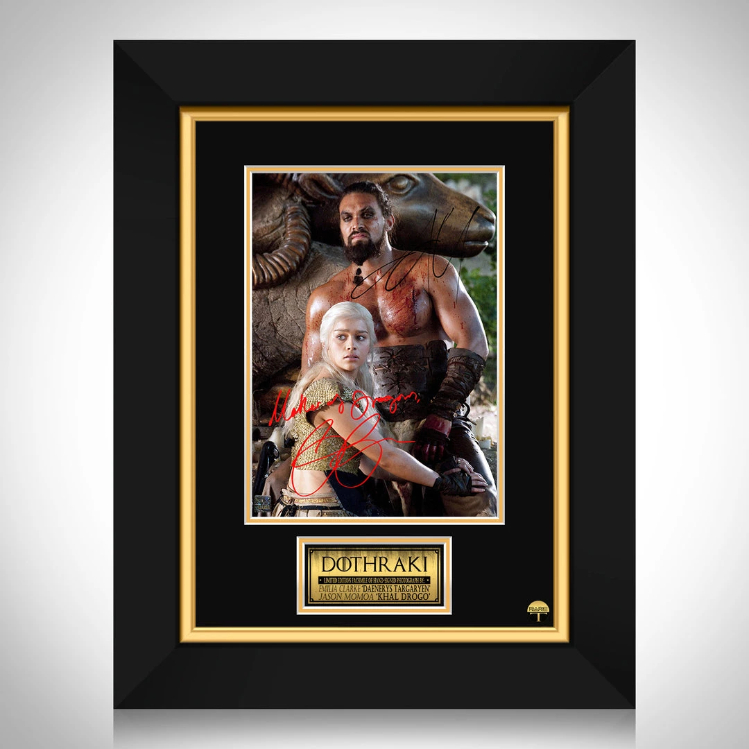 Pay homage to Khal Drogo & Daenerys, with this gallery-framed, officially licensed, limited edition facsimile of hand-signed promo photo, originally signed by Emilia Clarke & Jason Momoa, of which is strictly limited to 100 units Worldwide, and has been approved and numbered accordingly.