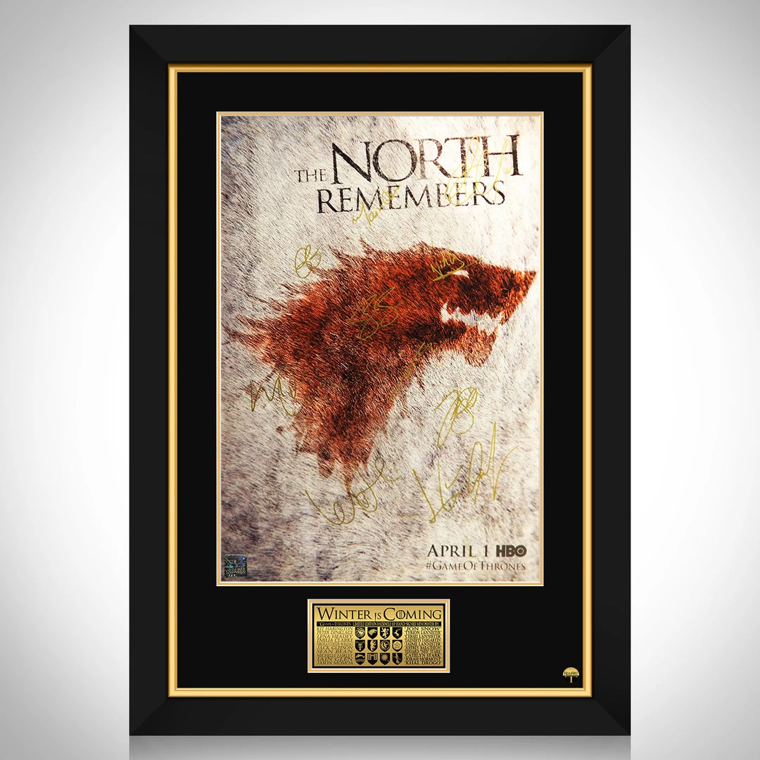 Pay homage to Game Of Thrones, with this gallery-framed, officially licensed, limited edition facsimile of hand-signed mini poster, originally signed by Kit Harington, Emilia Clarke, Peter Dinklage, Lena Headey, Nikolaj Coster-Waldau, Jack Gleeson, Sean Bean, Michelle Fairley, Iain Glen & Jason Momoa. of which is strictly limited to 100 units Worldwide, and has been approved and numbered accordingly.